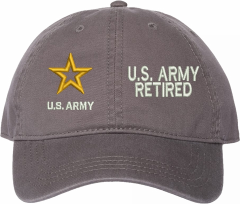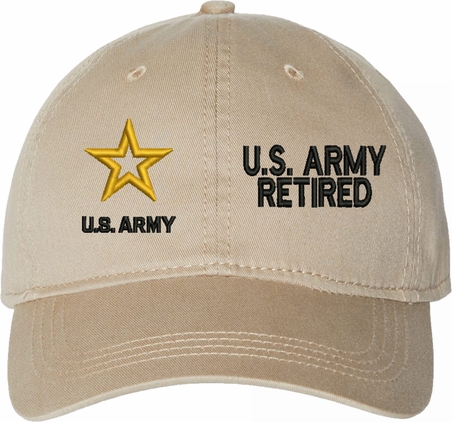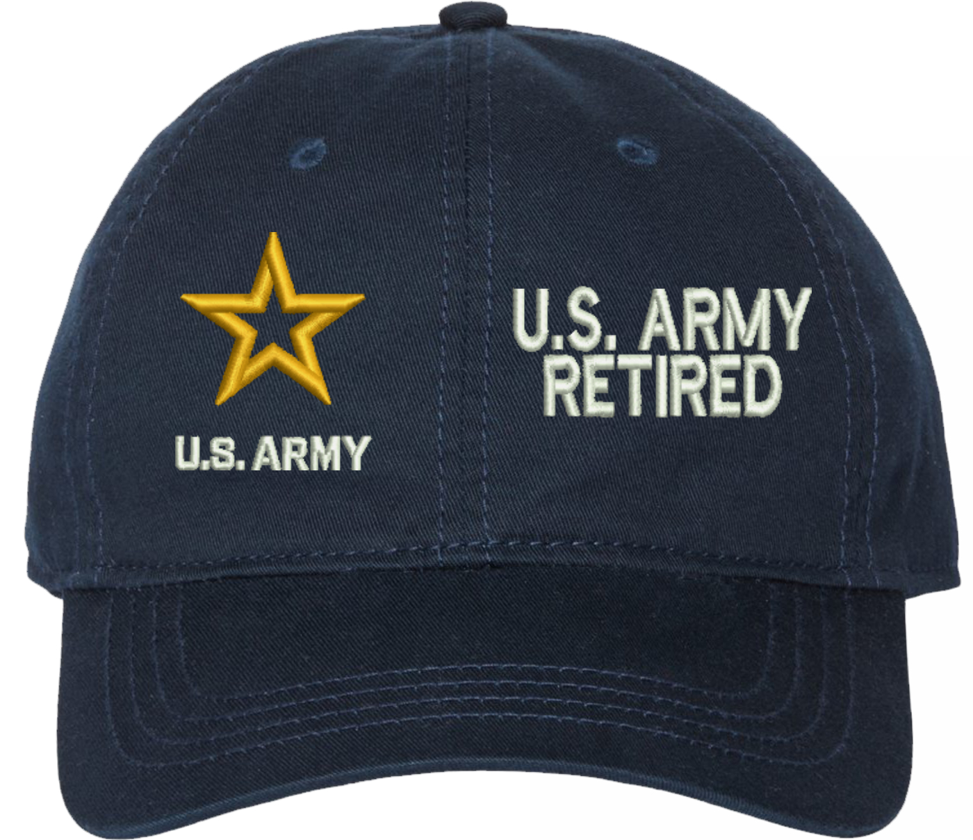 Show your Army pride with this U.S. Army Retired Unstructured Dad Cap from MilitaryBest. Crafted from 100% washed chino twill cotton, this six-panel, low-profile cap offers a relaxed and comfortable fit. Featuring high-quality embroidery done in our Scottsboro, Alabama facility, this cap is designed with a pre-curved visor and an adjustable tri-glide buckle closure for a perfect fit. Whether for everyday wear or as a meaningful gift, this cap is a great way to honor your own or a loved one's service.For caps ordered with custom embroidered personalized text please allow an additional 3 to 5 days production time. All custom back text will be embroidered in ALL CAPITAL LETTERS. Caps with back text or eggs are non-returnable unless there is a material defect in the cap.