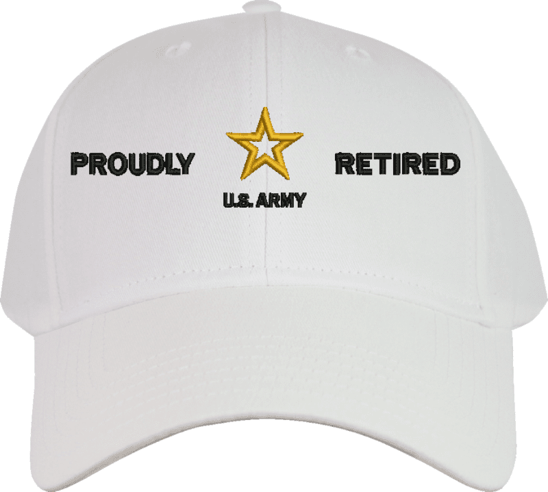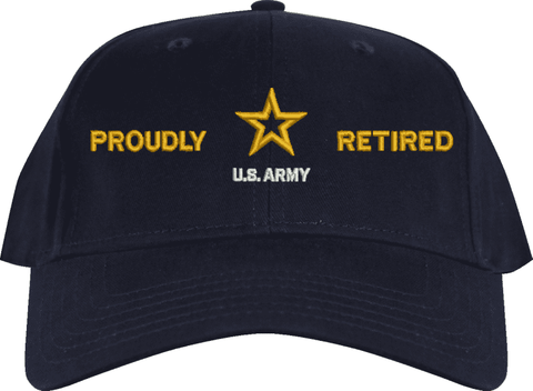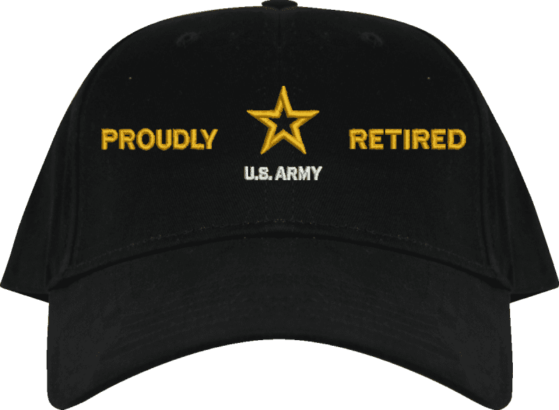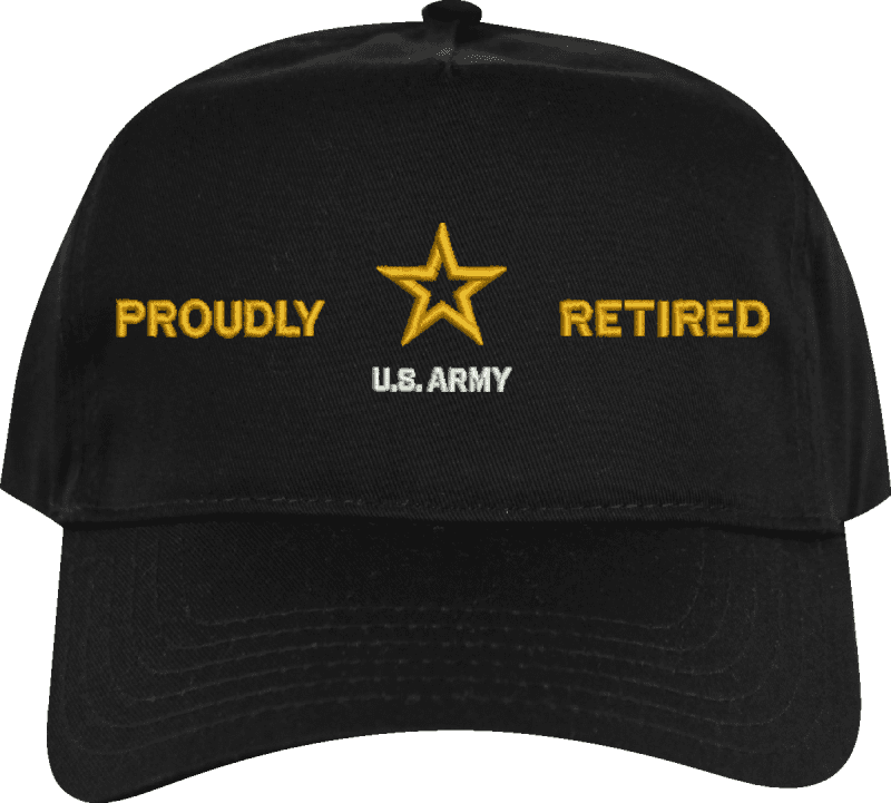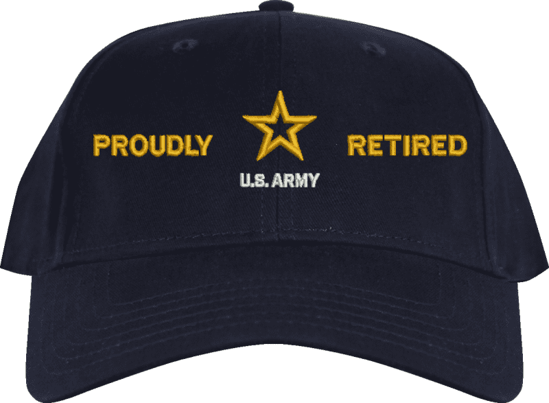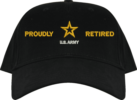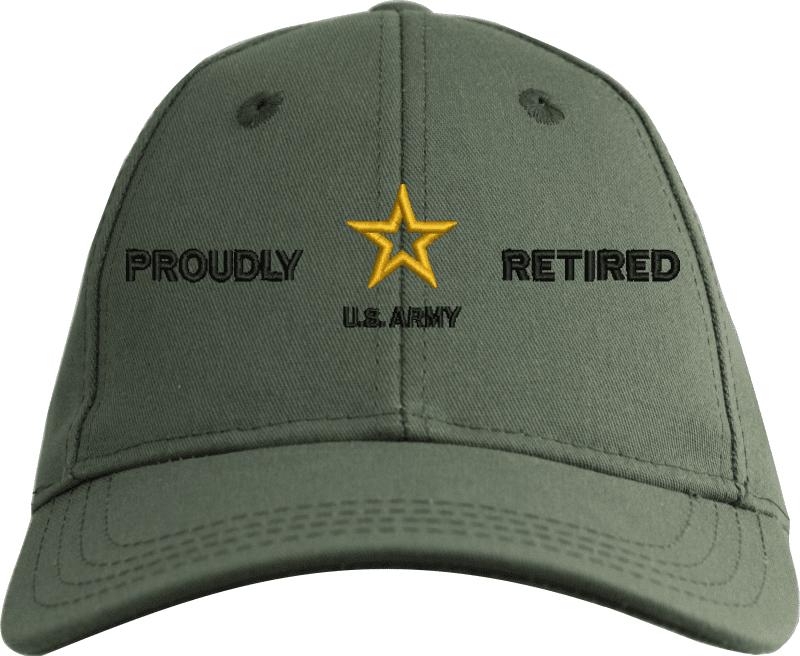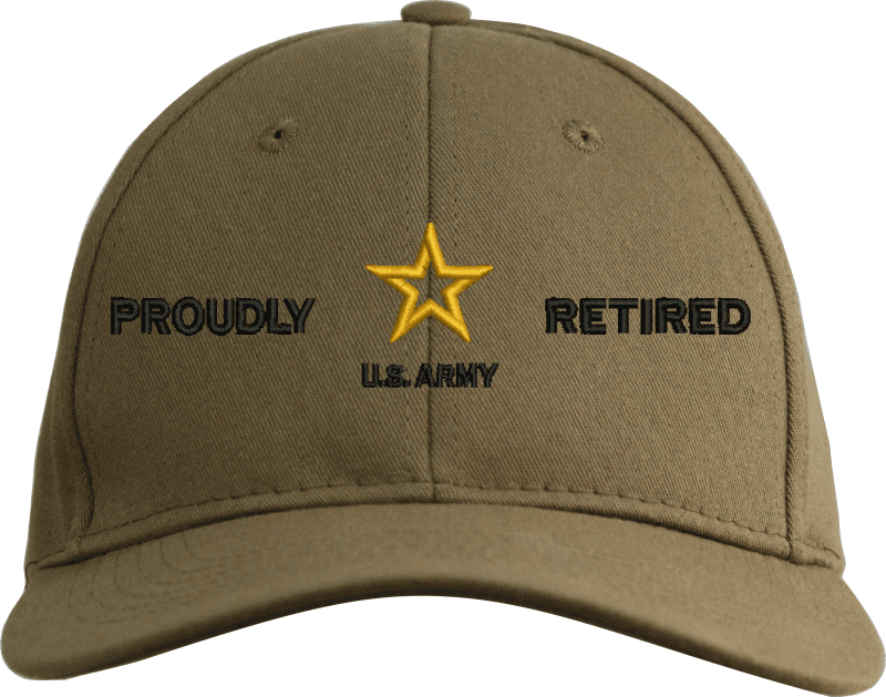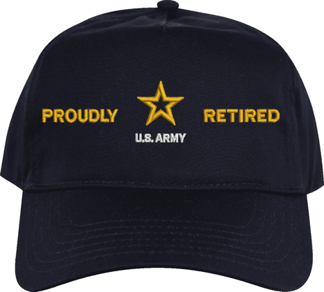 MilitaryBest is proud to offer this quality U.S. Army Proudly Retired Embroidered Cap. This cap is available in either 5 panel high profile or 6 panel low profile styling. This U.S. Army Proudly Retired Embroidered Cap will make a great addition to your collection or a great gift. You are sure to be the envy of all your veteran buddies. This U.S. Army Proudly Retired Embroidered Cap is embroidered at our facilities in Scottsboro, AL by skilled craftsmen with a passion for patriotism. Your satisfaction is guaranteed!We will be glad to include scrambled eggs. For caps ordered with custom embroidered personalized text please allow an additional 3 to 5 days production time. All custom back text will be embroidered in ALL CAPS. Caps with back text or eggs are non-returnable unless there is a material defect in the cap. Unless specified otherwise text will be embroidered with traditional yellow/gold thread.