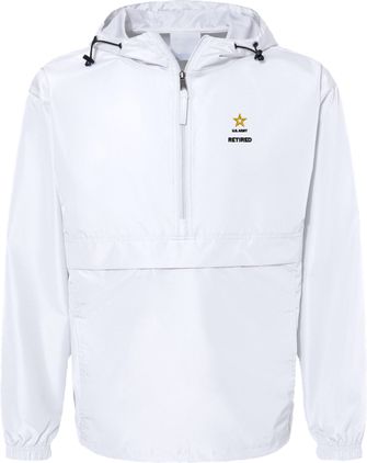 MilitaryBest is proud to offer this quality U.S. Army Retired Hooded Windbreaker. Also known as an Anorak Jacket, this windbreaker is designed to keep wind and water out. With a design embroidered over the left chest, this windbreaker is embroidered to order at our facilities in Scottsboro, AL.. This windbreaker can be packed into the mesh lined pouch pocket for a more portable method of storage.