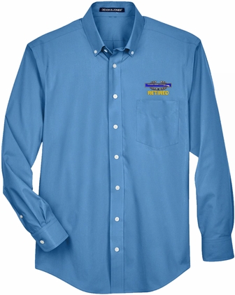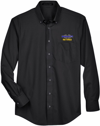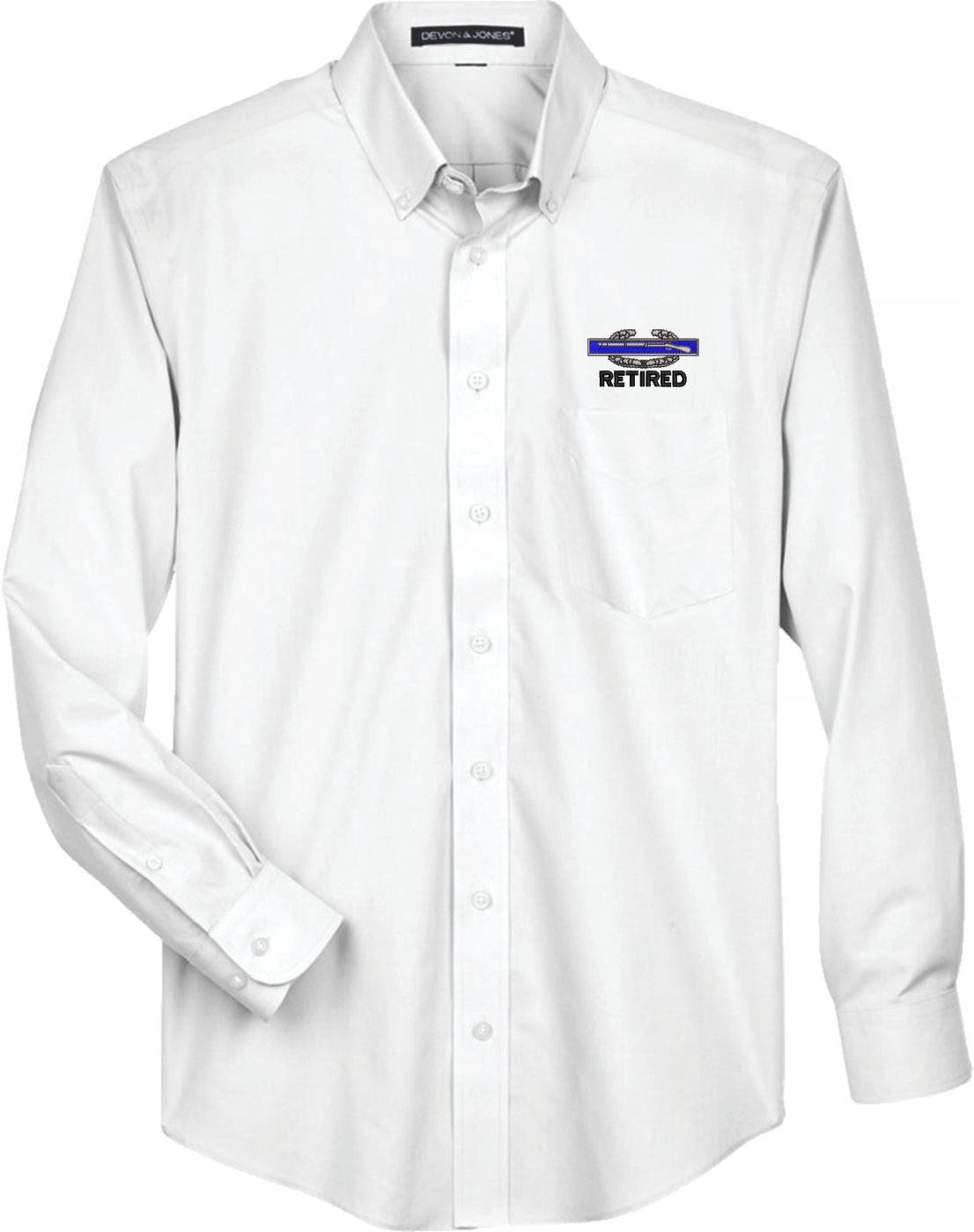 MilitaryBest has expanded its line of apparel with this U.S. Army Retired with Combat Infantry Badge Embroidered Dress Shirt. This long sleeve button down dress shirt is made using a stain-release, wrinkle-free, 55% cotton/45% polyester material. The pocket over the left chest measures 4 3/4" across. Featuring a U.S. Army Retired with Combat Infantry Badge design above the pocket, this shirt is embroidered to order at our facilities in Scottsboro, AL..- 55% cotton/45% polyester