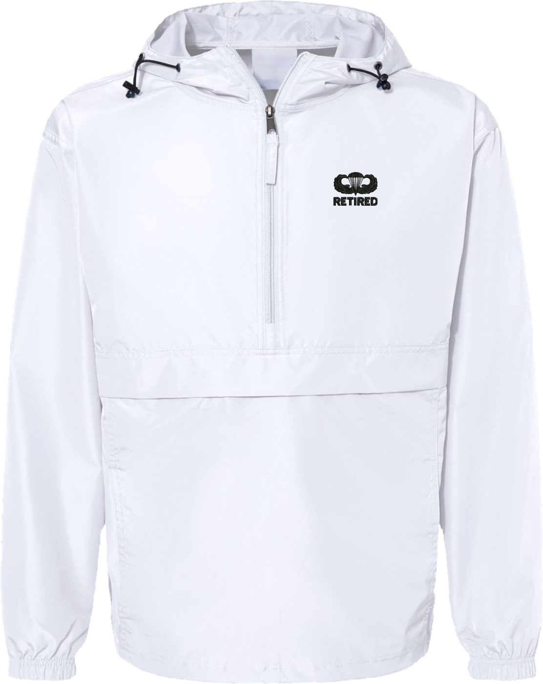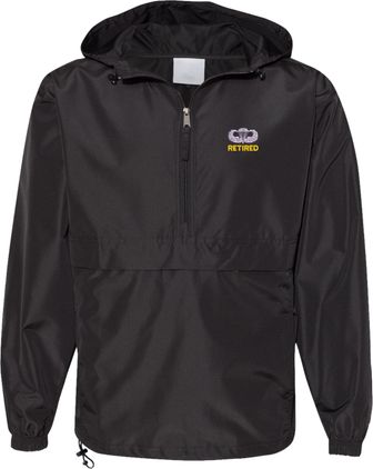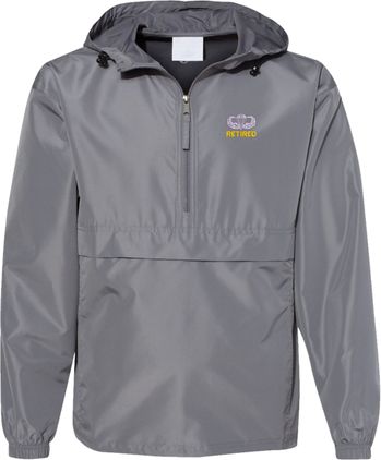 MilitaryBest is proud to offer this quality U.S. Army Retired with Jump Wings Hooded Windbreaker. Also known as an Anorak Jacket, this windbreaker is designed to keep wind and water out. With a design embroidered over the left chest, this windbreaker is embroidered to order at our facilities in Scottsboro, AL.. This windbreaker can be packed into the mesh lined pouch pocket for a more portable method of storage.- 100% Polyester