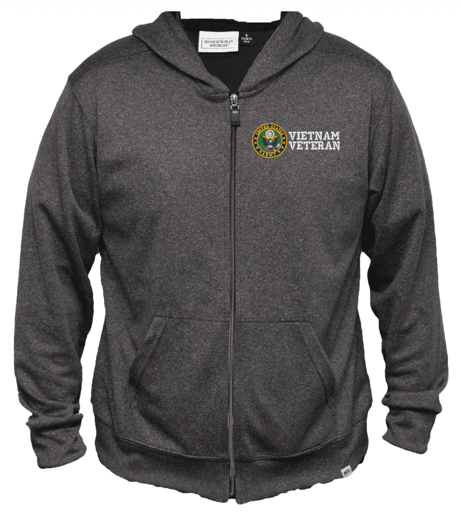 MilitaryBest proudly offers this top-quality U.S. Army Vietnam Veteran Men's 100% Polyester Heather Grey Full-Zip Hoodie. We have proudly partnered with Authentically American to offer you this Made in the USA Hoodie. Water & wrinkle resistance make this zip hoodie the perfect layering piece from the golf course to you favorite travel destination.As with all MilitaryBest items, our designs are Officially Licensed. A percentage of the sale of each MilitaryBest item is forwarded to the licensing department in support of it's MWR (Morale, Welfare, & Recreation) program. These payments are made by either ALL4U LLC or the wholesaler from where the item originated. Our team thanks you for your service and your support of these programs.