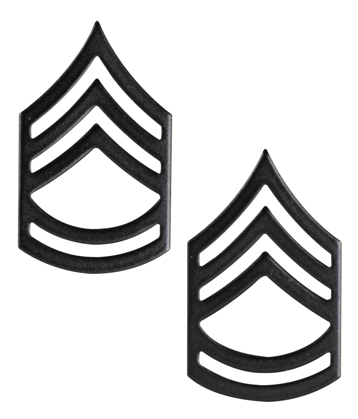 This pair of U.S. Army Sergeant First Class Black Metal collar rank insignia is produced by the same company that supplies badges, devices and assorted military items to exchanges and posts around the globe. This insignia's quality is guaranteed.