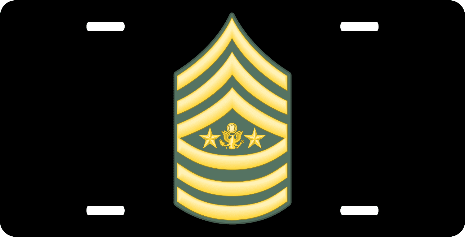 This U.S. Army Sergeant Major License Plate is made from heavy gauge aluminum and has a baked enamel finish to last for many years of use. Each plate measures 5 15/16" x 11 15/16". This license plate would make a wonderful addition to your collection or a great gift.