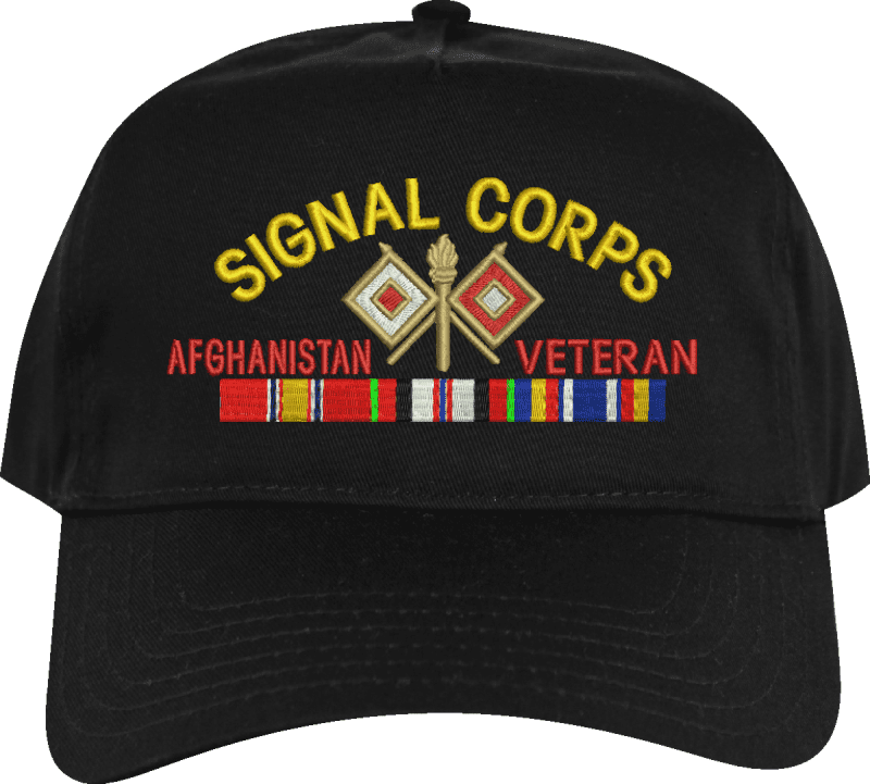 MilitaryBest is proud to offer this U.S. Army Signal Corps Afghanistan Veteran Embroidered Cap. This cap is available in a 5 panel high profile or 6 panel low profile styling. All our caps are made from top quality materials. This cap would make a wonderful addition to your collection or a great gift! All custom embroidery is done at our facility in Scottsboro, AL. *Caps ordered with embroidered back text requires an additional 1 to 2 days of production time. All personalized caps will be embroidered in ALL CAPITAL LETTERS. Caps personalized with back text are not returnable unless there is a material defect in the cap.A percentage of the sale of each MilitaryBest item is forwarded to the licensing departments of each respective branch of service in support of the MWR (Morale, Welfare, & Recreation) program. These payments are made by either ALL4U LLC or the wholesaler from where the item originated. Our team thanks you for your service and your support of these programs.