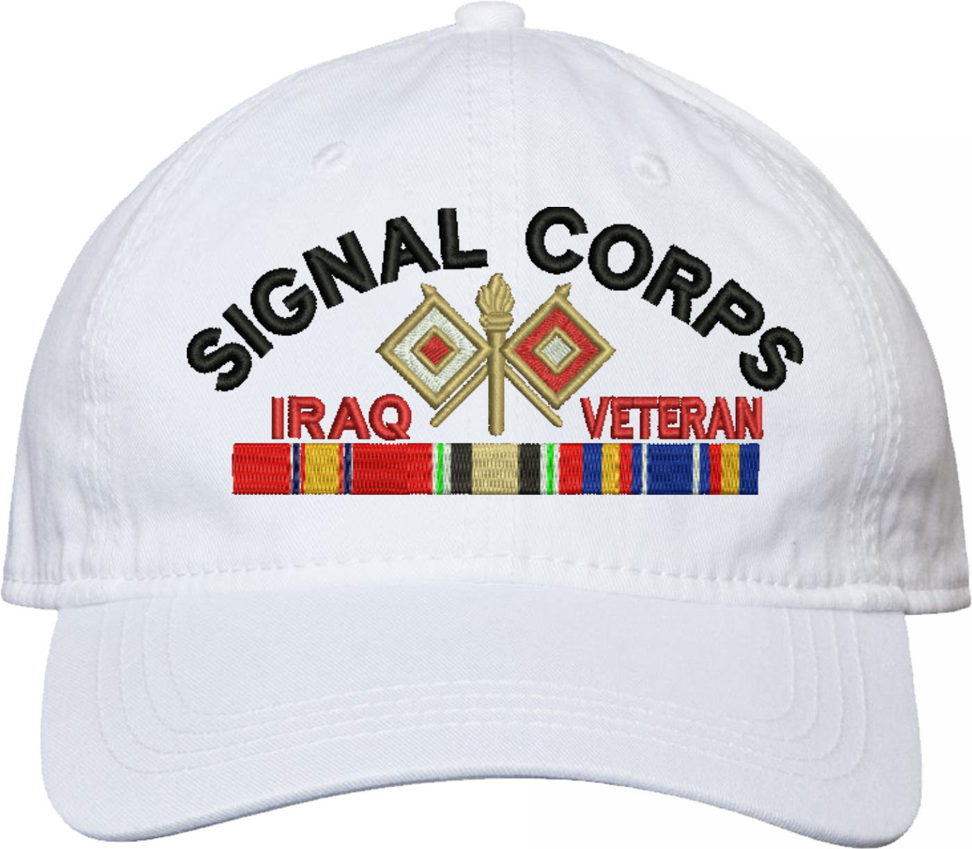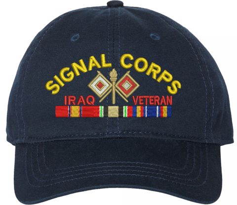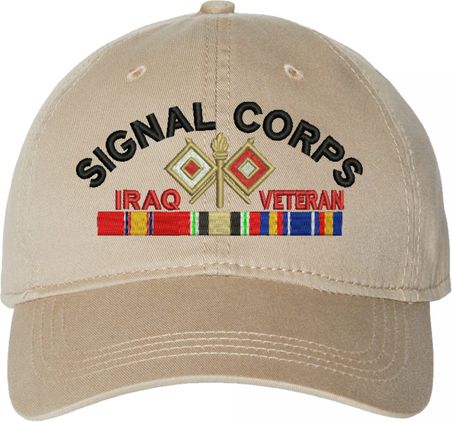 Show your Army pride with this U.S. Army Signal Corps Iraq Veteran Unstructured Dad Cap from MilitaryBest. Crafted from 100% washed chino twill cotton, this six-panel, low-profile cap offers a relaxed and comfortable fit. Featuring high-quality embroidery done in our Scottsboro, Alabama facility, this cap is designed with a pre-curved visor and an adjustable tri-glide buckle closure for a perfect fit. Whether for everyday wear or as a meaningful gift, this cap is a great way to honor your own or a loved one's service.For caps ordered with custom embroidered personalized text please allow an additional 3 to 5 days production time. All custom back text will be embroidered in ALL CAPITAL LETTERS. Caps with back text or eggs are non-returnable unless there is a material defect in the cap.