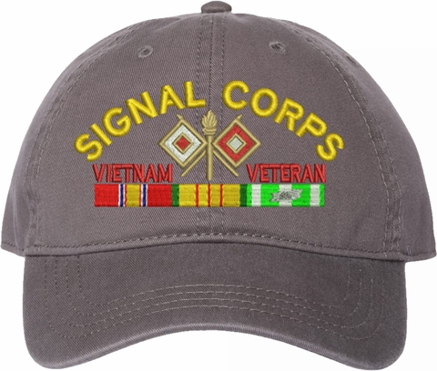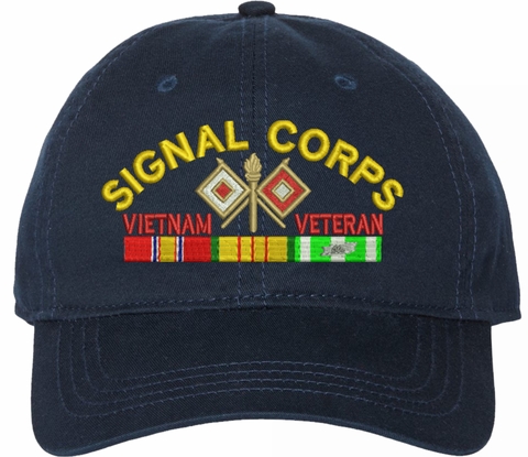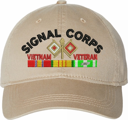 Show your Army pride with this U.S. Army Signal Corps Vietnam Veteran Unstructured Dad Cap from MilitaryBest. Crafted from 100% washed chino twill cotton, this six-panel, low-profile cap offers a relaxed and comfortable fit. Featuring high-quality embroidery done in our Scottsboro, Alabama facility, this cap is designed with a pre-curved visor and an adjustable tri-glide buckle closure for a perfect fit. Whether for everyday wear or as a meaningful gift, this cap is a great way to honor your own or a loved one's service.For caps ordered with custom embroidered personalized text please allow an additional 3 to 5 days production time. All custom back text will be embroidered in ALL CAPITAL LETTERS. Caps with back text or eggs are non-returnable unless there is a material defect in the cap.