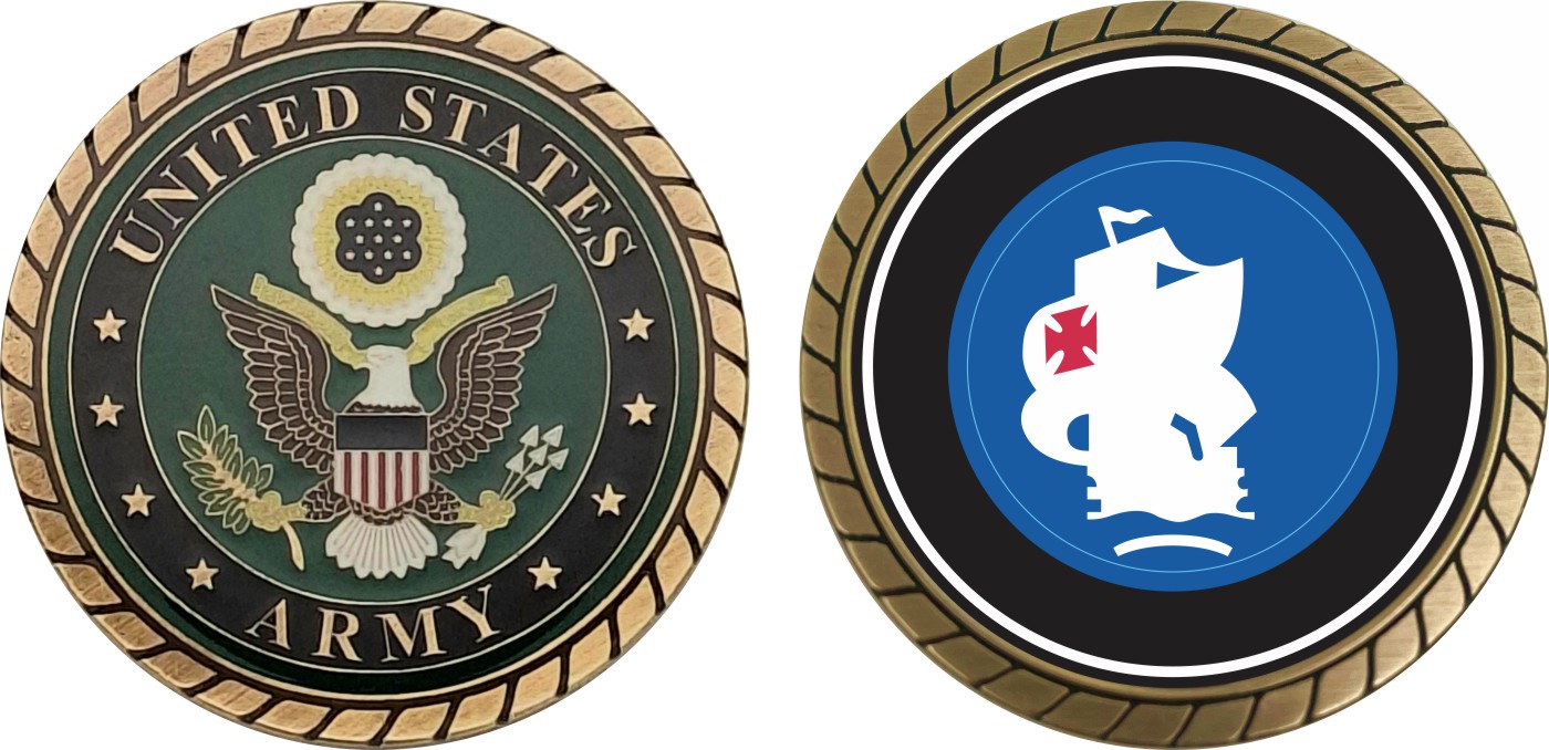 This 1 3/4” U.S. Army South Command Patch Challenge Coin is proudly offered by Militarybest. This Officially Licensed Army coin has beautiful enamel finish on one side and an organized crisp clean design on the opposite side.