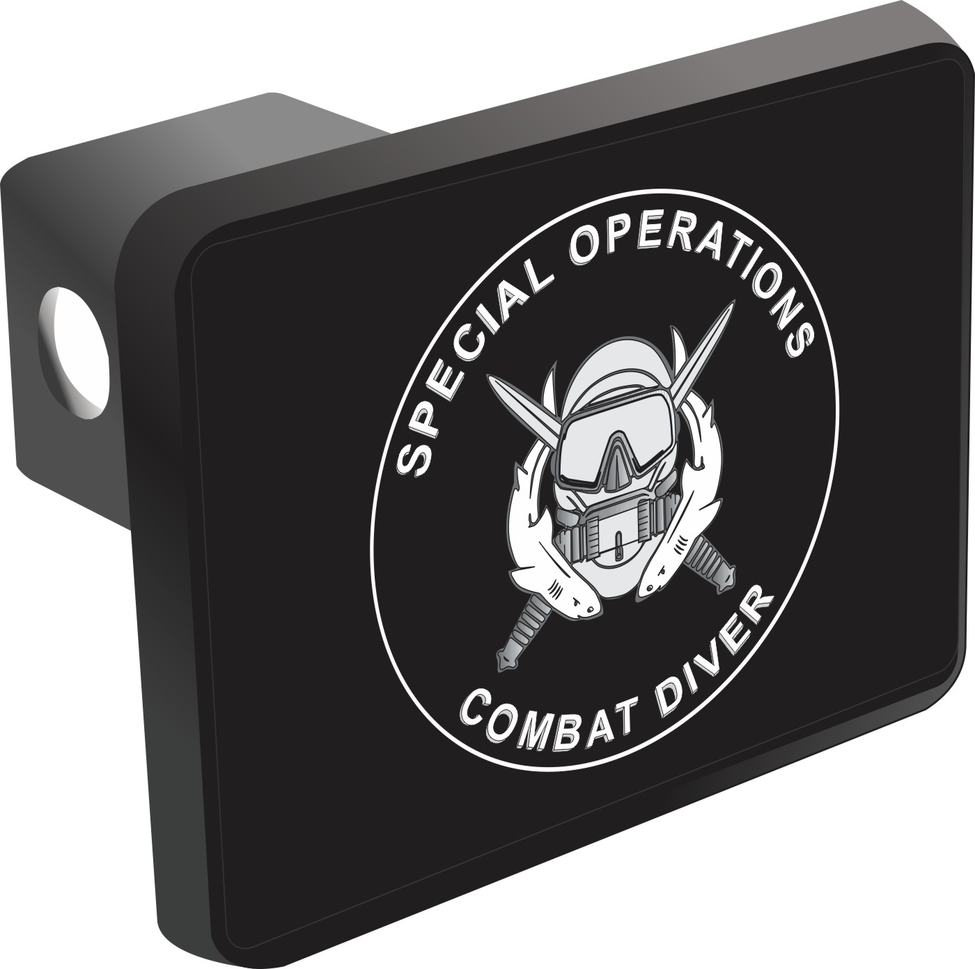 This U.S. Army Special Operations Combat Diver Hitch Cover is proudly Made in the USA. Each Hitch Cover's face plate measures 4.7" x 3.4" and is applied on a black heavy duty injection molded plastic 2" hitch cover; link pin not included. The face plate of the hitch cover is sublimation printed to provide a beautiful glossy finish sure to catch the eye. This hitch cover would make a wonderful addition to your truck or other vehicle.A percentage of the sale of each MilitaryBest item is forwarded to the licensing departments of each respective branch of service in support of the MWR (Morale, Welfare, & Recreation) program. These payments are made by either ALL4U LLC or the wholesaler from where the item originated. Our team thanks you for your service and your support of these programs.