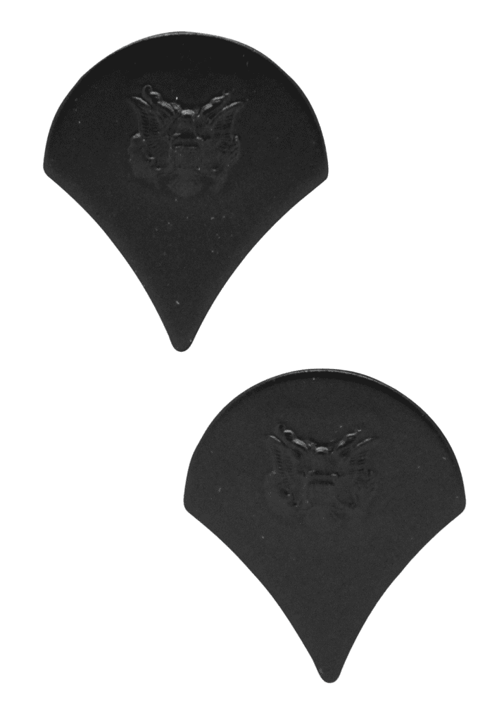 This pair of U.S. Army Specialist 4 Black Metal collar rank insignia is produced by the same company that supplies badges, devices and assorted military items to exchanges and posts around the globe. This insignia's quality is guaranteed.