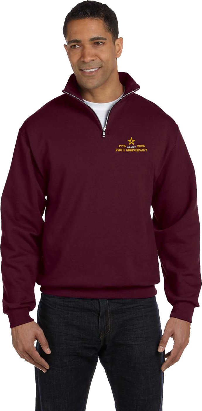 MilitaryBest is proud to offer this U.S. Army Star Insignia 250th Anniversary Embroidered Quarter-Zip Pullover. This quality shirt is embroidered by our MilitaryBest team in Northeast Alabama.PRODUCT FEATURES