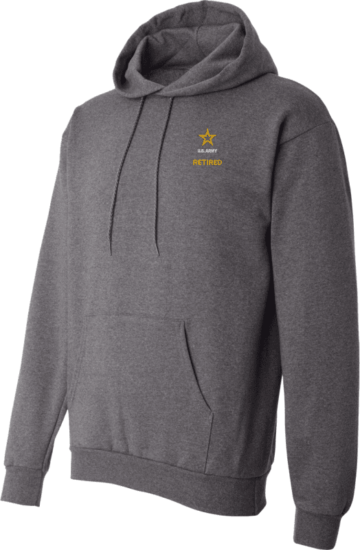 MilitaryBest has expanded its line of apparel with this custom embroidered U.S. Army Retired Hoodie. Each Hoodie is direct embroidered onto a Champion brand 9.5 oz 50/50 Cotton Poly blend. This U.S. Army Retired Hoodie will make an excellent addition to your wardrobe, or a great gift. Your satisfaction is Guaranteed! This U.S. Army Retired Hoodie is custom embroidered at our facilities in Scottsboro, AL.