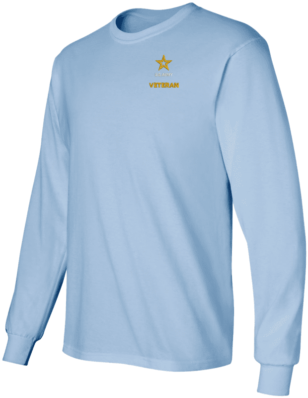 Note: Some of the Color Options pictured may not be available. Available Color Options are listed on the drop down menu above.MilitaryBest has expanded its line of apparel with this custom embroidered U.S. Army Veteran Long Sleeve T-Shirt. This Gildan brand long sleeve t-shirt is made using a 6 oz pre-shrunk 100% cotton material. This U.S. Army Veteran Long Sleeve T-Shirt will make an excellent addition to your wardrobe or a quality gift. This U.S. Army Veteran Long Sleeve T-Shirt is custom embroidered at our facilities in Scottsboro, Alabama.