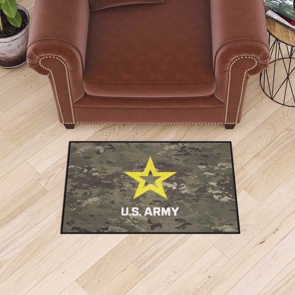 This U.S. Army Starter Rug measures 19"x30" and is made in the USA with 100% nylon carpet and non-skid vinyl backing. Each rug is chromojet printed. This rug would make a wonderful addition to your collection or a great gift.Fan Mats products are made to order and returns are not accepted unless there is a material defect in the product. These items are made to order and are in production 7-10 days.