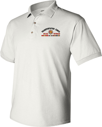 MilitaryBest is proud to offer this quality U.S. Army Transportation Corps Iraq Veteran Polo. Each Polo is available in either 100% Ringspun cotton pique or a 50/50 cotton/polyester blend. These quality Military Polos are proudly embroidered at our facilities in Scottsboro, AL. Support the Army MWR program by purchasing only from Licensed Vendors.