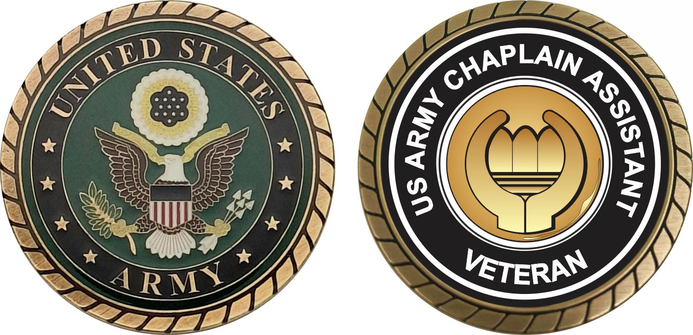 This 1 3/4” U.S. Army Veteran Chaplain Assistant Challenge Coin is proudly offered by MilitaryBest. This Officially Licensed Army coin has beautiful enamel finish on one side and an organized crisp clean U.S. Army Veteran Chaplain Assistant design on the opposite side.