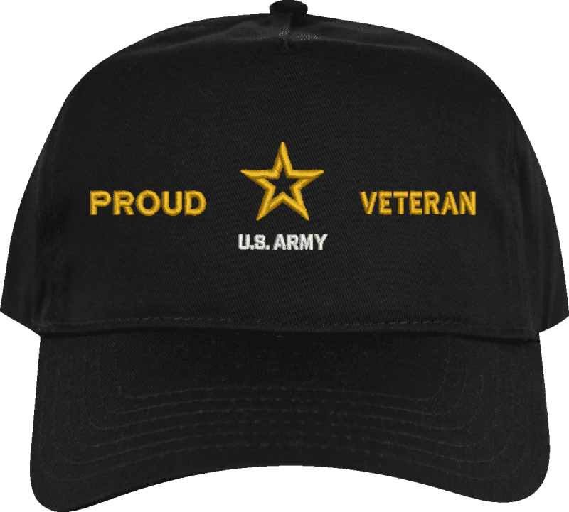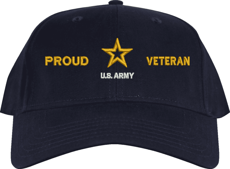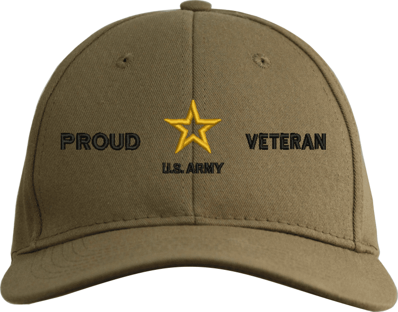 MilitaryBest is proud to offer this quality U.S. Army Proud Veteran Embroidered Cap. This cap is available in either 5 panel high profile or 6 panel low profile styling. This U.S. Army Proud Veteran Embroidered Cap will make a great addition to your collection or a great gift. You are sure to be the envy of all your veteran buddies. This U.S. Army Proud Veteran Embroidered Cap is embroidered at our facilities in Scottsboro, AL by skilled craftsmen with a passion for patriotism. Your satisfaction is guaranteed!We will be glad to include scrambled eggs. For caps ordered with custom embroidered personalized text please allow an additional 3 to 5 days production time. All custom back text will be embroidered in ALL CAPS. Caps with back text or eggs are non-returnable unless there is a material defect in the cap. Unless specified otherwise text will be embroidered with traditional yellow/gold thread.