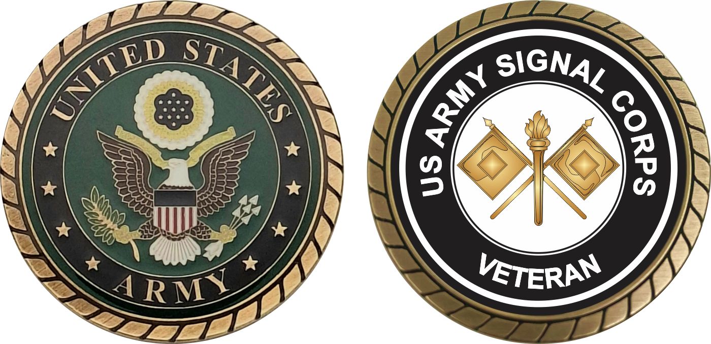 This 1 3/4” U.S. Army Veteran Signal Corps Challenge Coin is proudly offered by MilitaryBest. This Officially Licensed Army coin has beautiful enamel finish on one side and an organized crisp clean U.S. Army Veteran Signal Corps design on the opposite side.