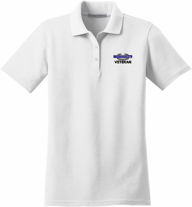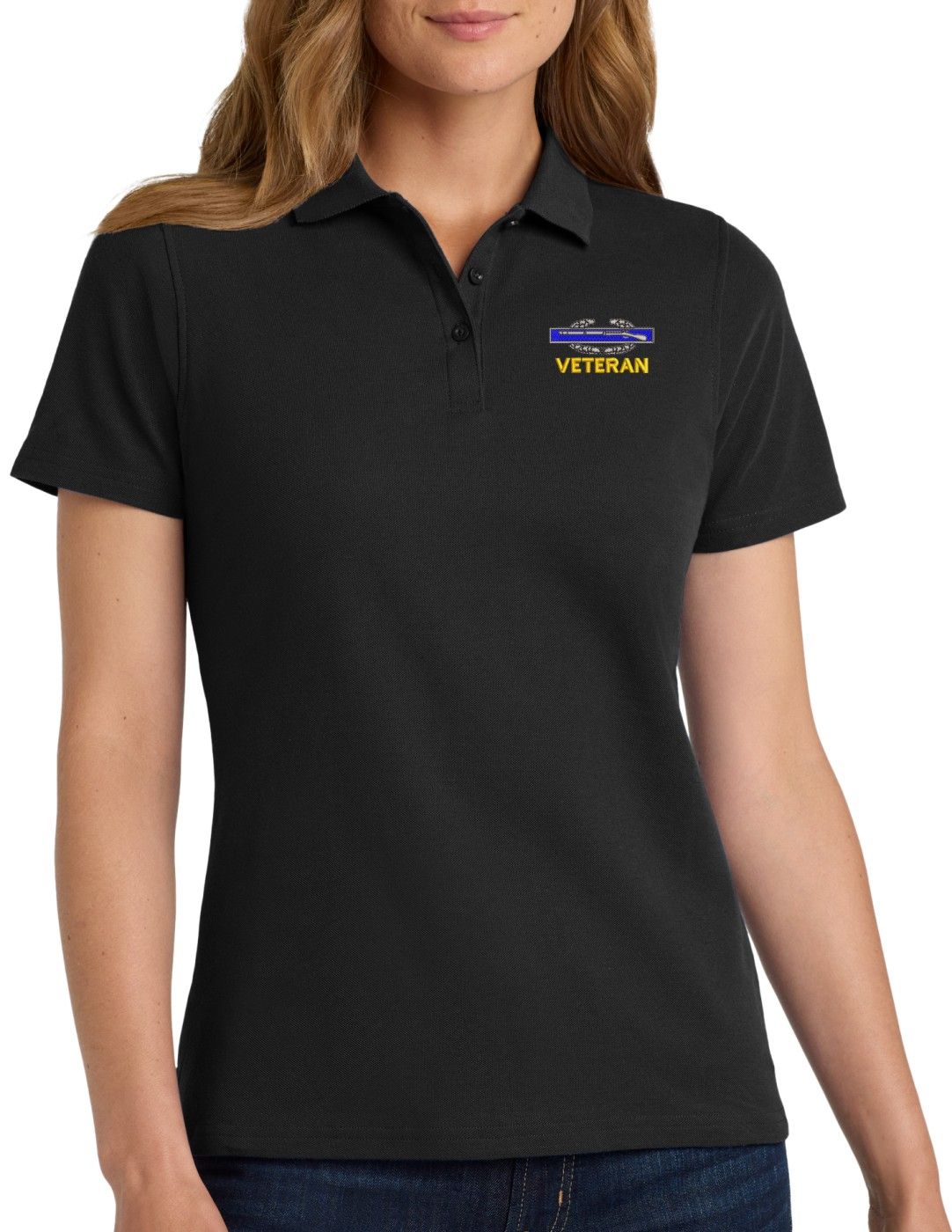 MilitaryBest is proud to offer this U.S. Army Veteran with Combat Infantry Badge Women's Stain-Release Polo. This polo is embroidered by our MilitaryBest team in Northeast Alabama. These polos are made with a stain-release finish for long-lasting wear, odor-fighting properties, and superior wrinkle and shrink resistance.Care Instructions: Machine Wash Cold With Like Colors. Do Not Use Fabric Softener. Do Not Bleach. Tumble Dry Low. Warm Iron If Necessary.