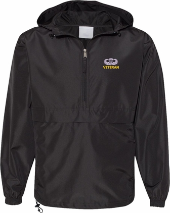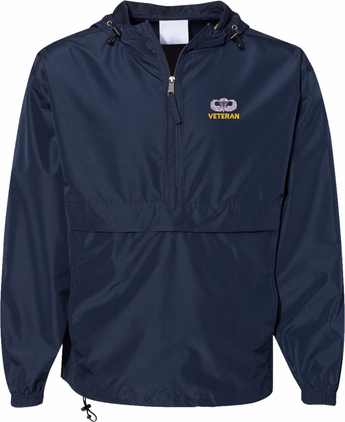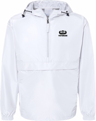 MilitaryBest is proud to offer this quality U.S. Army Veteran with Jump Wings Hooded Windbreaker. Also known as an Anorak Jacket, this windbreaker is designed to keep wind and water out. With a design embroidered over the left chest, this windbreaker is embroidered to order at our facilities in Scottsboro, AL.. This windbreaker can be packed into the mesh lined pouch pocket for a more portable method of storage.- 100% Polyester