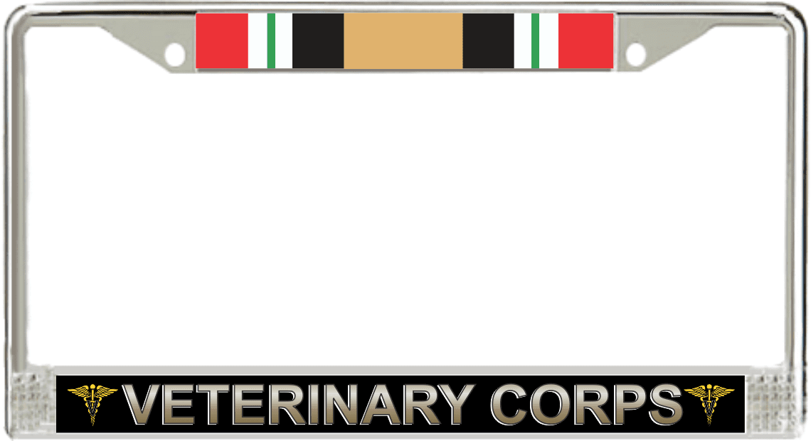 This U.S. Army Veterinary Corps Iraq Veteran License Plate Frame is made from the highest quality finished metal alloy. Each one is designed to provide years of use. Each is designed and produced in our facility in Scottsboro, Alabama. Our Military License Plate Frames are standard designs and have been a staple in our product line for 15 years. Please check with your state and local regulations regarding suitability for displaying this License Plate Frame on you vehicle since these regulations may have changed over time.A percentage of the sale of each MilitaryBest item is forwarded to the licensing departments of each respective branch of service in support of the MWR (Morale, Welfare, & Recreation) program. These payments are made by either ALL4U LLC or the wholesaler from where the item originated. Our team thanks you for your service and your support of these programs.
