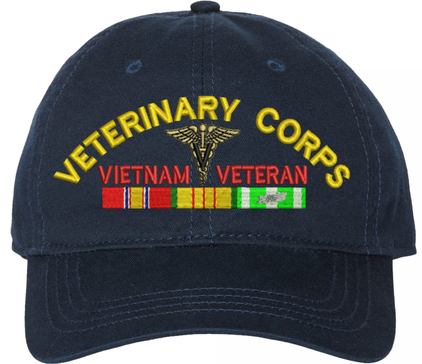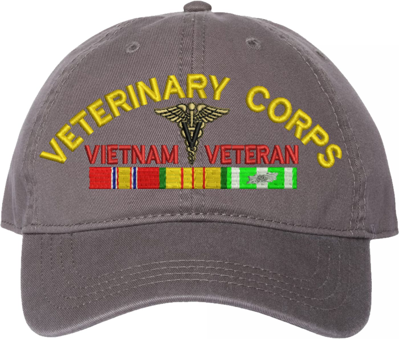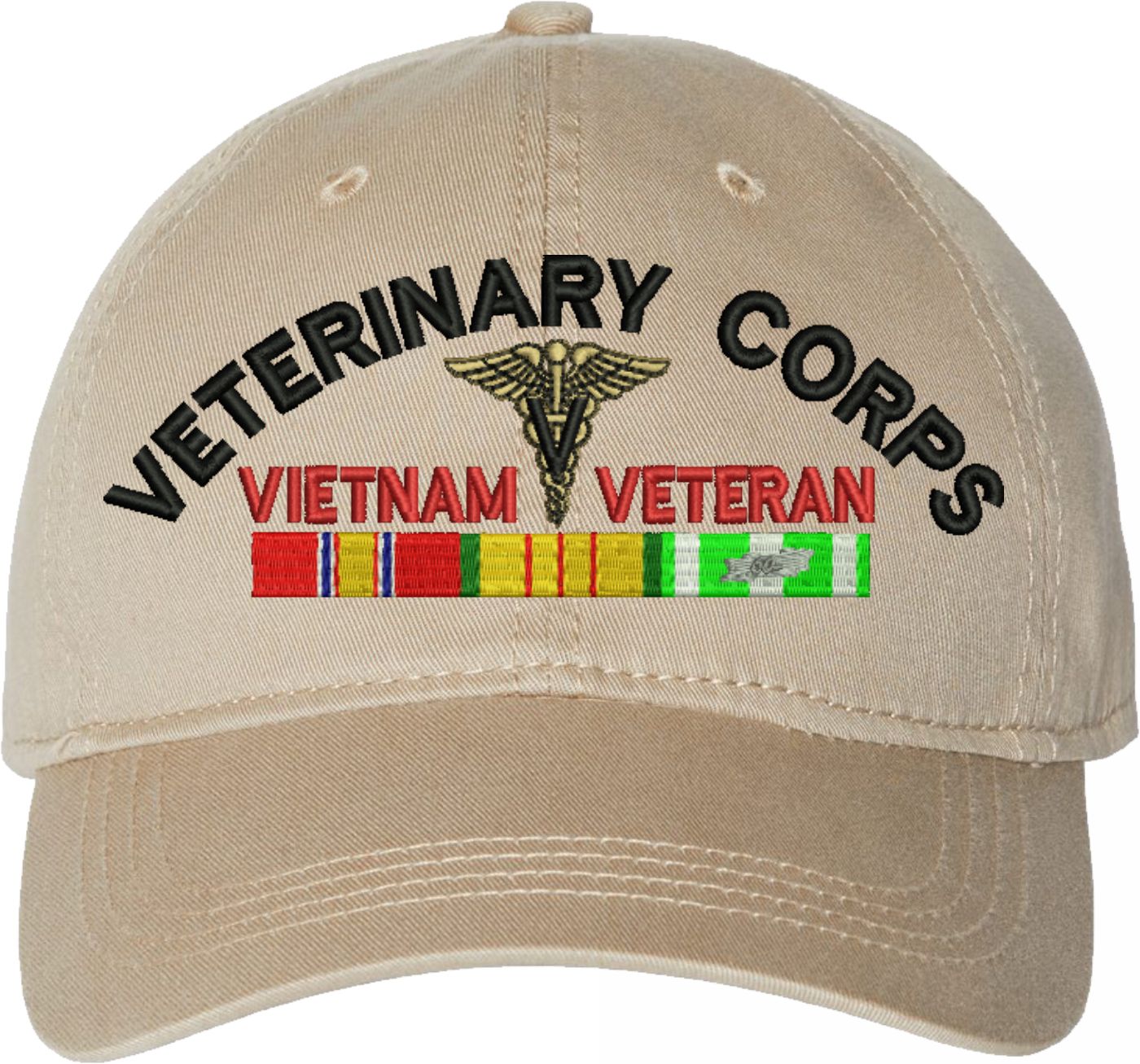 Show your Army pride with this U.S. Army Veterinary Corps Vietnam Veteran Unstructured Dad Cap from MilitaryBest. Crafted from 100% washed chino twill cotton, this six-panel, low-profile cap offers a relaxed and comfortable fit. Featuring high-quality embroidery done in our Scottsboro, Alabama facility, this cap is designed with a pre-curved visor and an adjustable tri-glide buckle closure for a perfect fit. Whether for everyday wear or as a meaningful gift, this cap is a great way to honor your own or a loved one's service.For caps ordered with custom embroidered personalized text please allow an additional 3 to 5 days production time. All custom back text will be embroidered in ALL CAPITAL LETTERS. Caps with back text or eggs are non-returnable unless there is a material defect in the cap.
