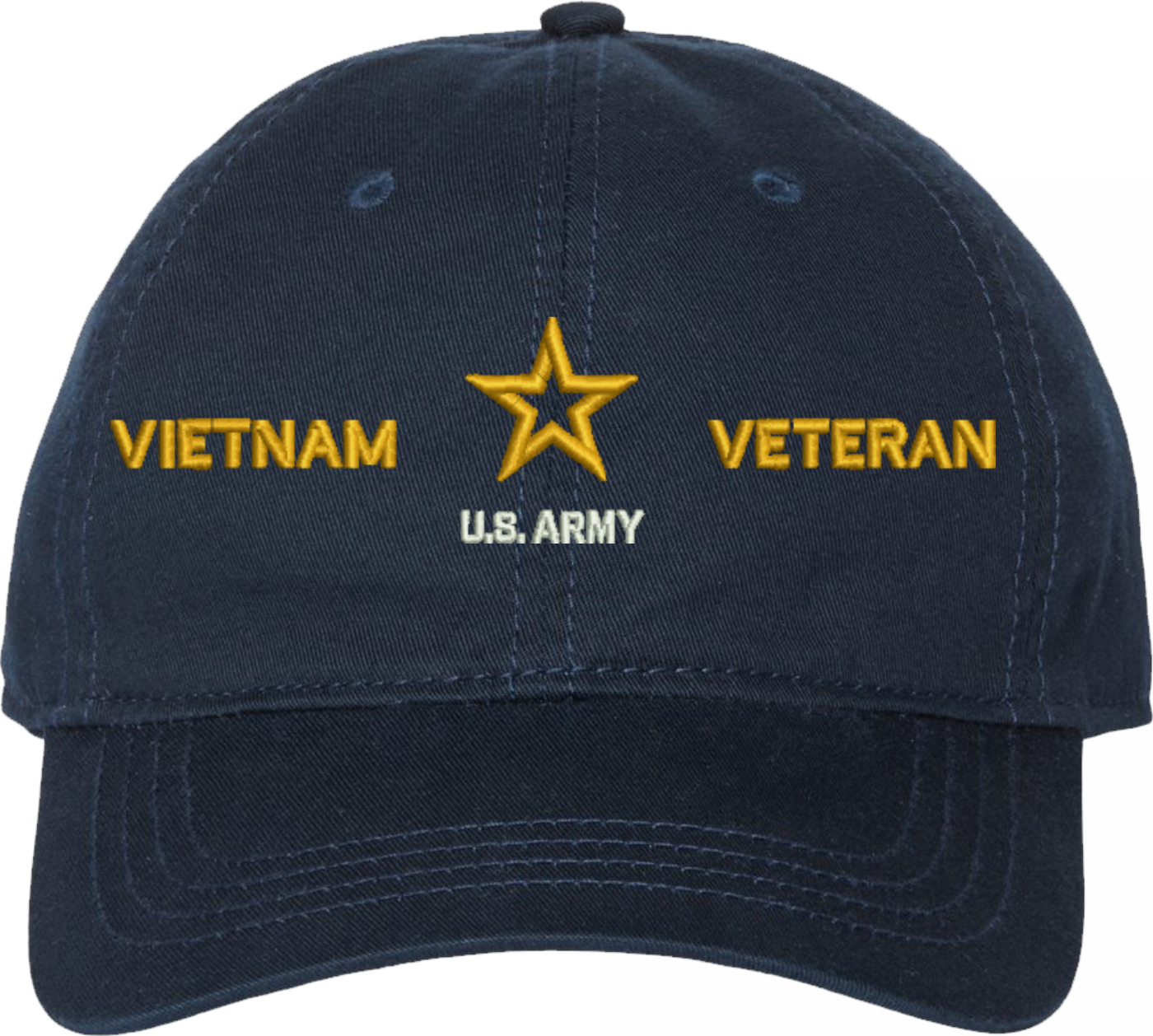 Show your Army pride with this U.S. Army Vietnam Veteran Unstructured Dad Cap from MilitaryBest. Crafted from 100% washed chino twill cotton, this six-panel, low-profile cap offers a relaxed and comfortable fit. Featuring high-quality embroidery done in our Scottsboro, Alabama facility, this cap is designed with a pre-curved visor and an adjustable tri-glide buckle closure for a perfect fit. Whether for everyday wear or as a meaningful gift, this cap is a great way to honor your own or a loved one's service.For caps ordered with custom embroidered personalized text please allow an additional 3 to 5 days production time. All custom back text will be embroidered in ALL CAPITAL LETTERS. Caps with back text or eggs are non-returnable unless there is a material defect in the cap.