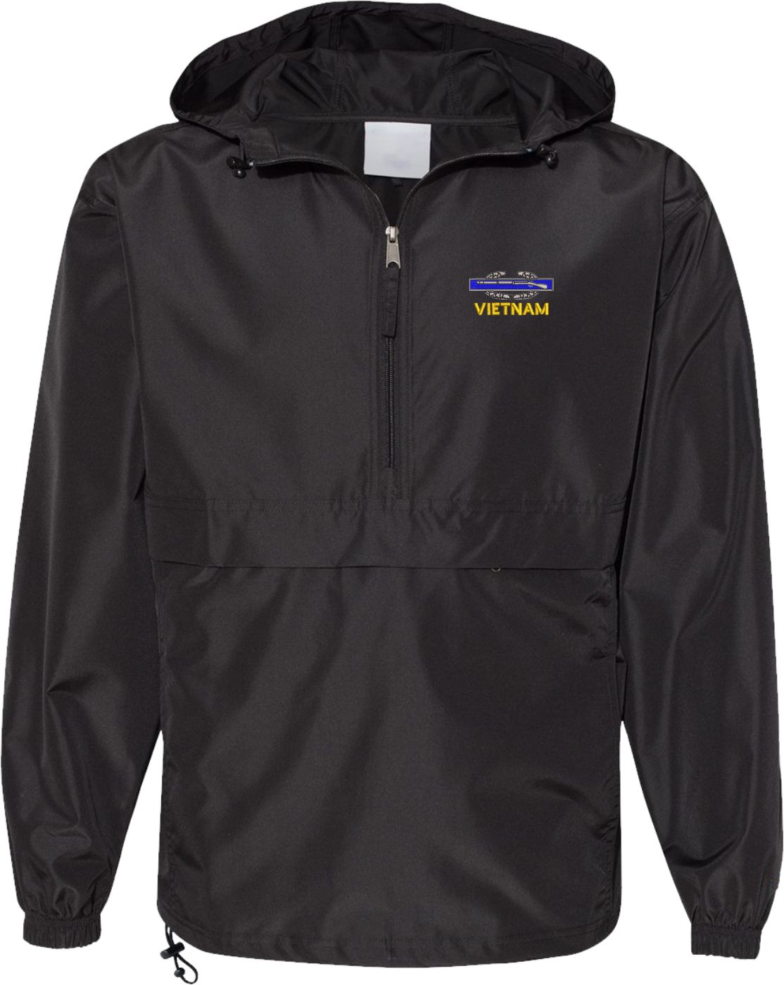 MilitaryBest is proud to offer this quality U.S. Army Vietnam with Combat Infantry Badge Hooded Windbreaker. Also known as an Anorak Jacket, this windbreaker is designed to keep wind and water out. With a design embroidered over the left chest, this windbreaker is embroidered to order at our facilities in Scottsboro, AL.. This windbreaker can be packed into the mesh lined pouch pocket for a more portable method of storage.- 100% Polyester