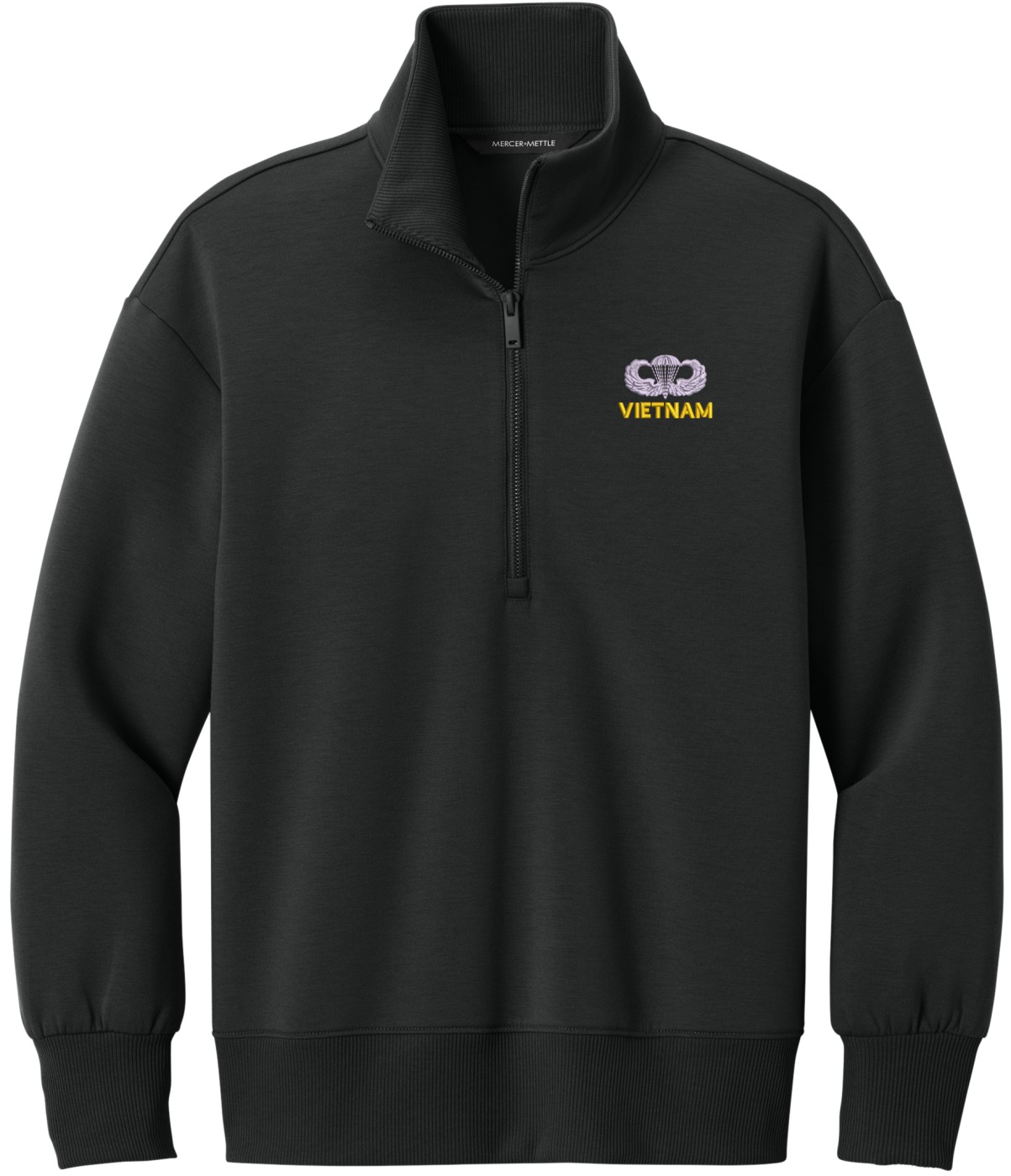 MilitaryBest is proud to offer this U.S. Army Vietnam with Jump Wings Women's Soft Spacer Quarter-Zip. This quarter-zip is embroidered by our MilitaryBest team in Northeast Alabama. These quarter-zips are made using spacer yarn to provide light insulation with a soft structure, they also fight odor and provide light UV ray protection.Care Instructions: Turn Garment Inside Out. Machine Wash Cold With Like Colors. Only Non-Chlorine Bleach, When Needed. Tumble Dry Low, Remove Promptly. Cool Iron, If Necessary. Do Not Use Fabric Softeners Or Dryer Sheets.