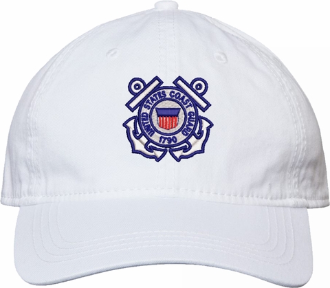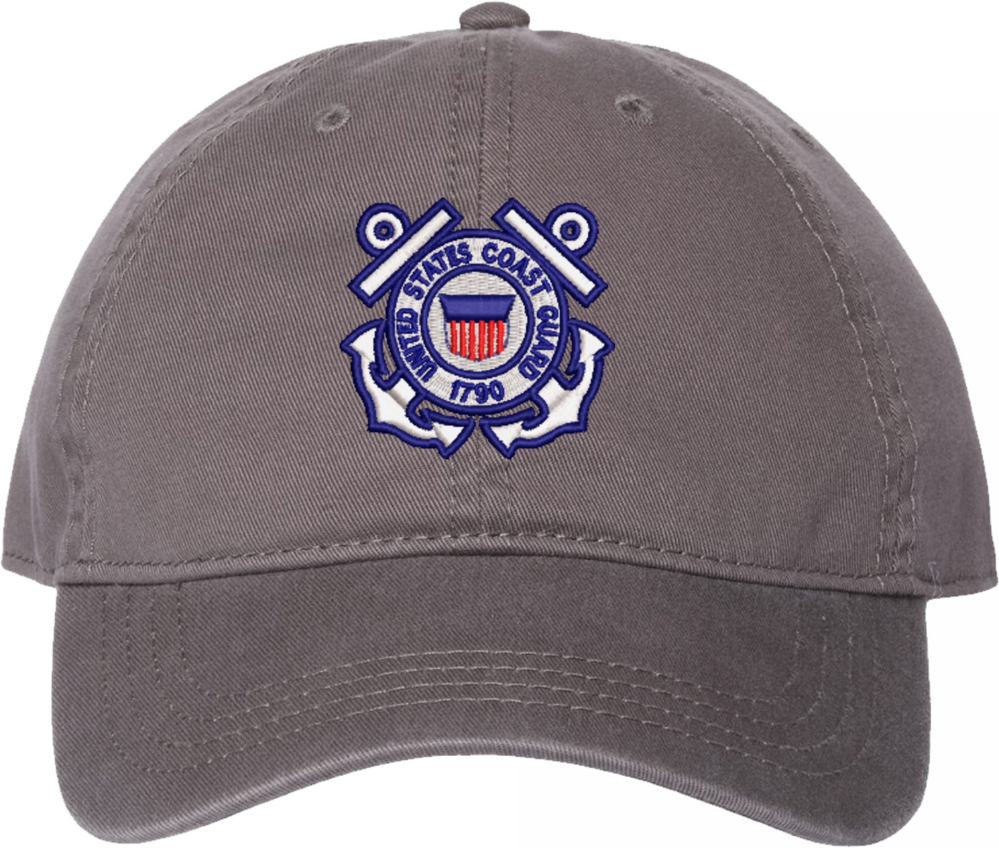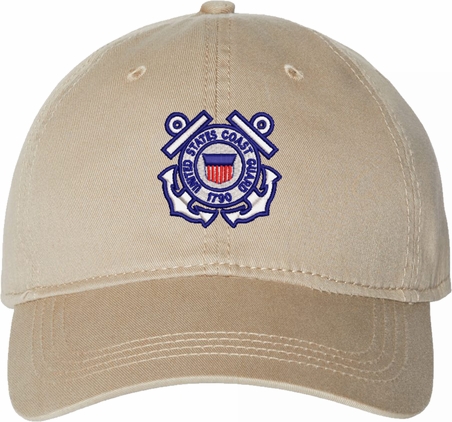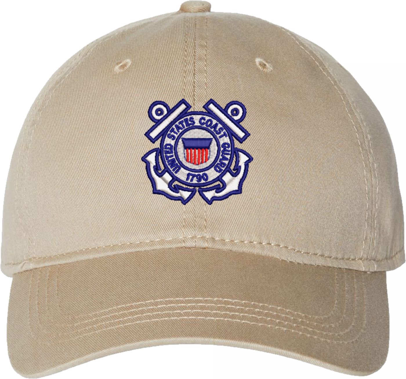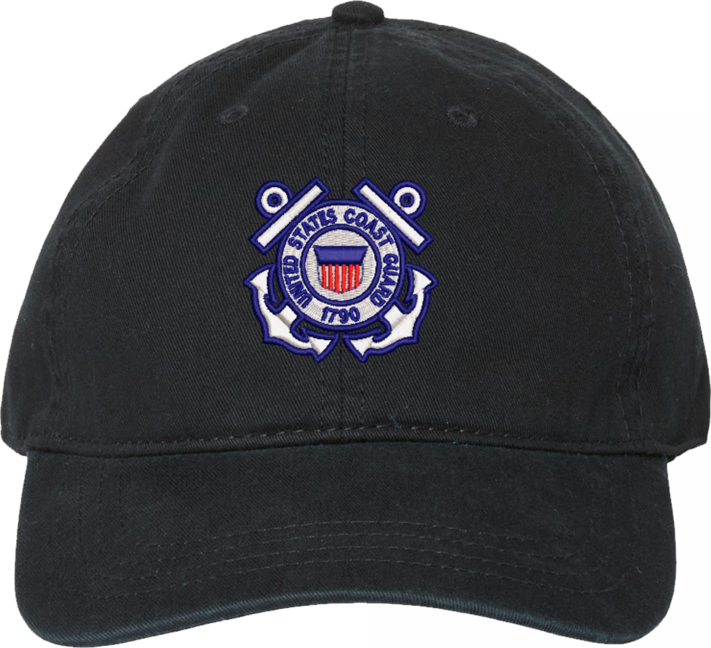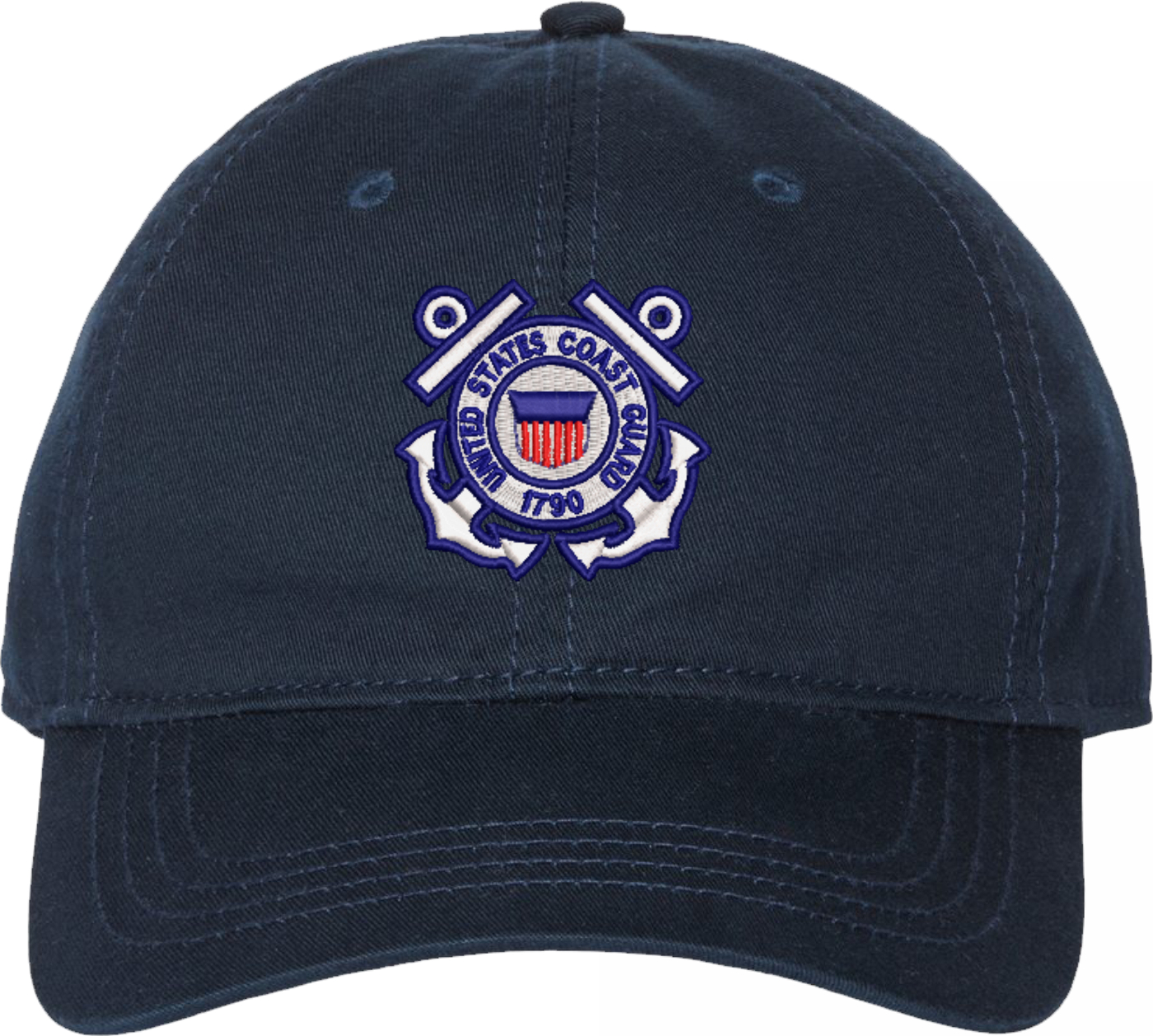 Show your Coast Guard pride with this U.S. Coast Guard Emblem Unstructured Dad Cap from MilitaryBest. Crafted from 100% washed chino twill cotton, this six-panel, low-profile cap offers a relaxed and comfortable fit. Featuring high-quality embroidery done in our Scottsboro, Alabama facility, this cap is designed with a pre-curved visor and an adjustable tri-glide buckle closure for a perfect fit. Whether for everyday wear or as a meaningful gift, this cap is a great way to honor your own or a loved one's service.For caps ordered with custom embroidered personalized text please allow an additional 3 to 5 days production time. All custom back text will be embroidered in ALL CAPITAL LETTERS. Caps with back text or eggs are non-returnable unless there is a material defect in the cap.