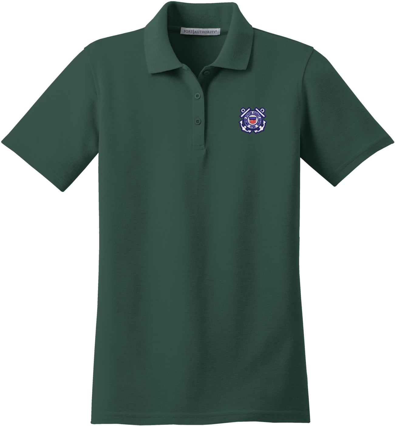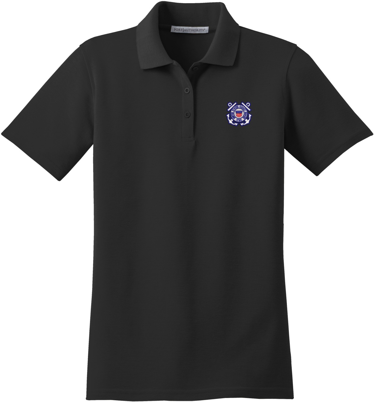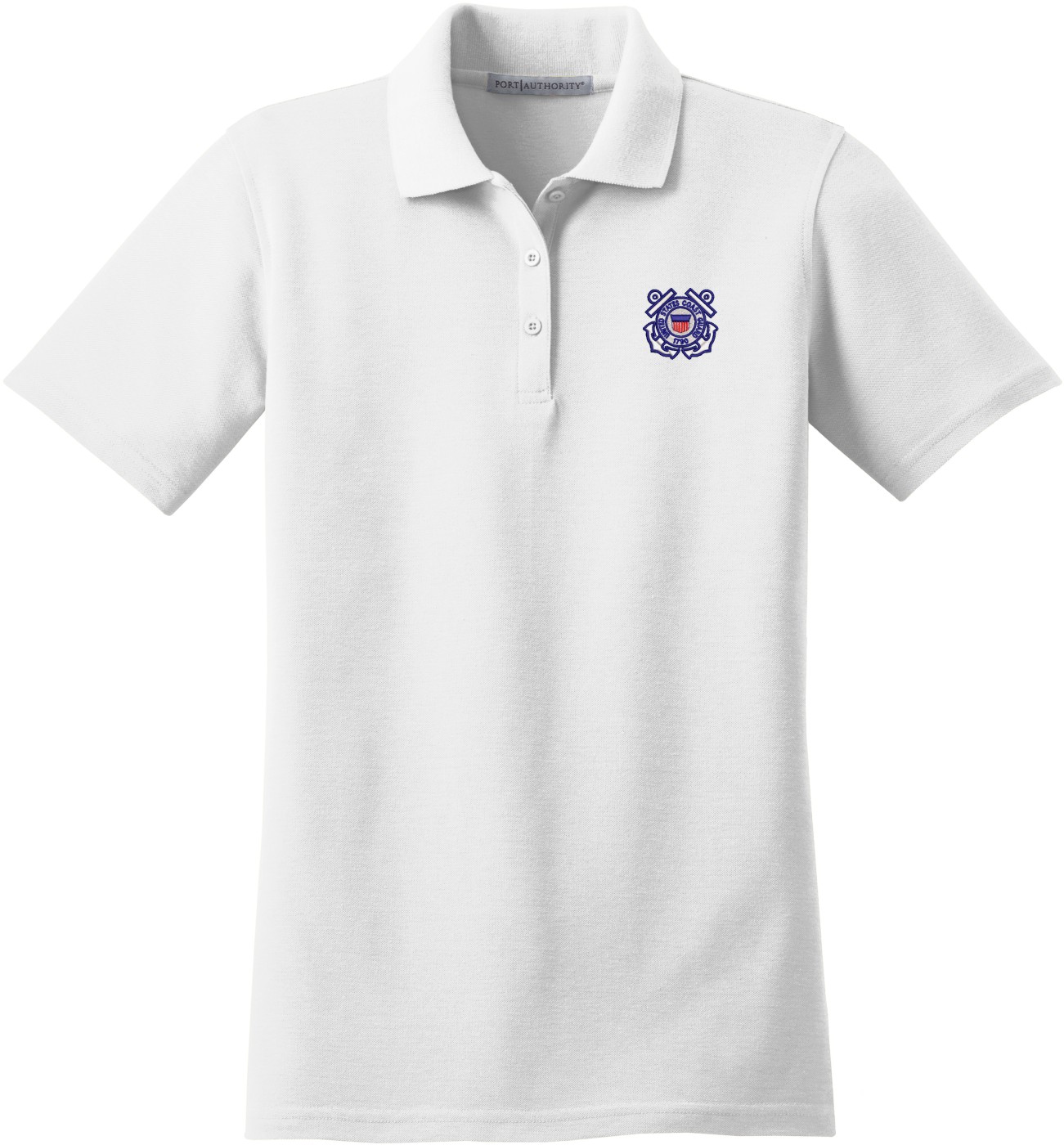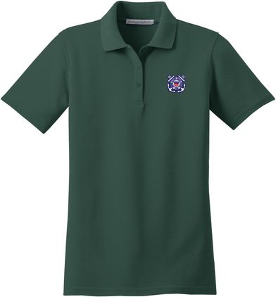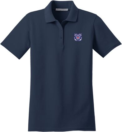 MilitaryBest is proud to offer this U.S. Coast Guard Emblem Women's Stain-Release Polo. This polo is embroidered by our MilitaryBest team in Northeast Alabama. These polos are made with a stain-release finish for long-lasting wear, odor-fighting properties, and superior wrinkle and shrink resistance.Care Instructions: Machine Wash Cold With Like Colors. Do Not Use Fabric Softener. Do Not Bleach. Tumble Dry Low. Warm Iron If Necessary.