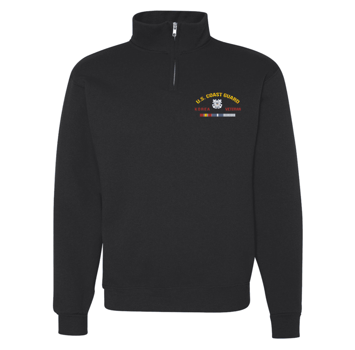 This U.S. Coast Guard Korea Veteran Quarter-Zip makes an excellent addition to your wardrobe or a fine gift and features High stitch density Nublend® pill-resistant fleece, Pre-shrunk 50/50 cotton/polyester and a Concealed 7"" zipper. The graphic is state of the art DTF film.It is available in 3 colors - Black, Navy Blue and Oxford Gray.