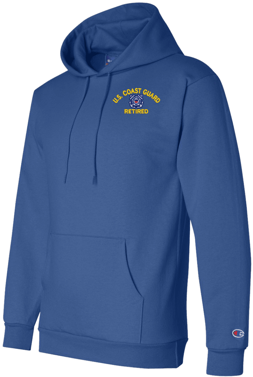 MilitaryBest has expanded its line of apparel with this custom embroidered U.S. Coast Guard Retired Hoodie. Each Hoodie is direct embroidered onto a Champion brand 9.5 oz 50/50 Cotton Poly blend. This U.S. Coast Guard Retired Hoodie will make an excellent addition to your wardrobe, or a great gift. Your satisfaction is Guaranteed! This U.S. Coast Guard Retired Hoodie is custom embroidered at our facilities in Scottsboro, AL.