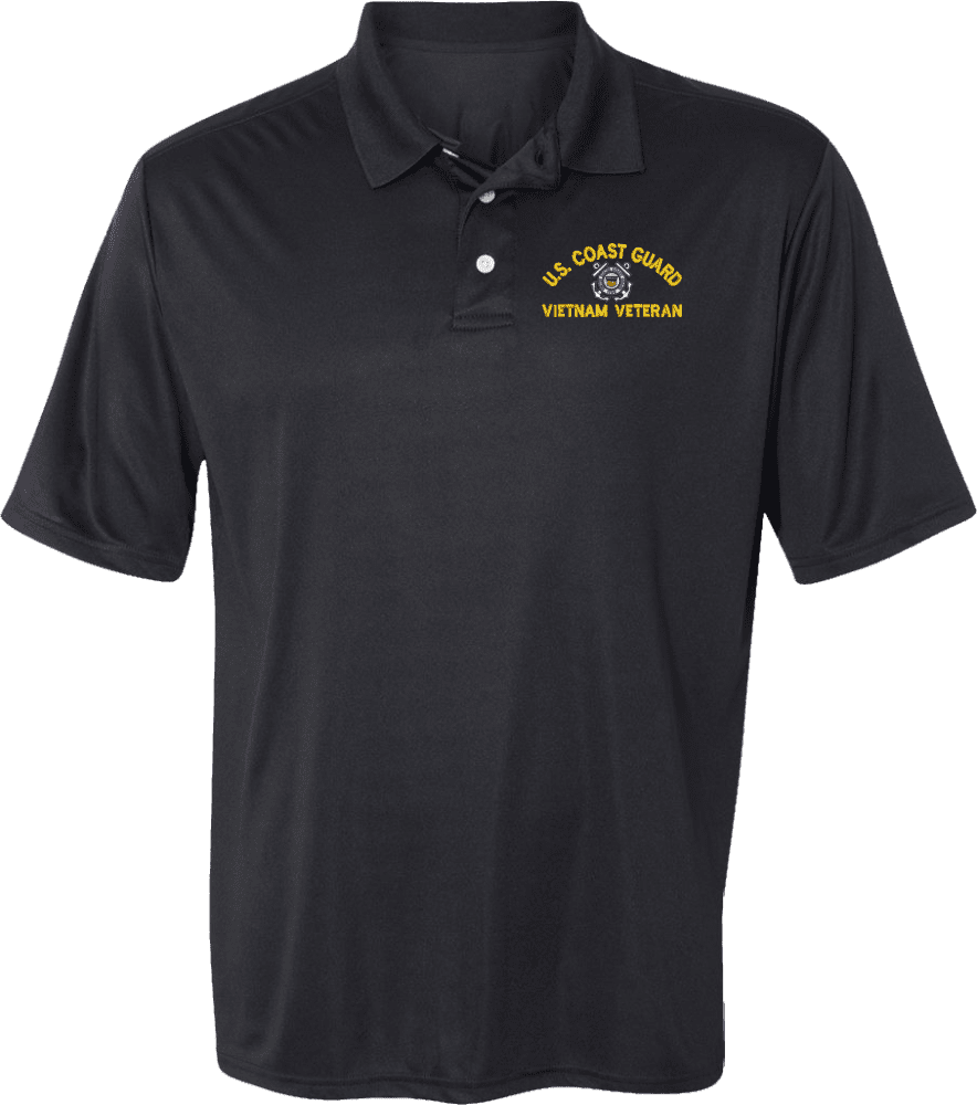 MilitaryBest has expanded its line of apparel with this custom embroidered U.S. Coast Guard Vietnam Veteran Moisture Wicking Polo. This Polo is made using 50/50 cotton/polyester moisture wicking material. This U.S. Coast Guard Vietnam Veteran Moisture Wicking Polo will make an excellent addition to your wardrobe, or a great gift. Your satisfaction is guaranteed! Each U.S. Coast Guard Vietnam Veteran Moisture Wicking Polo is directly embroidered at our facilities in Scottsboro, AL.