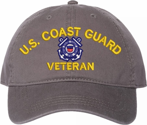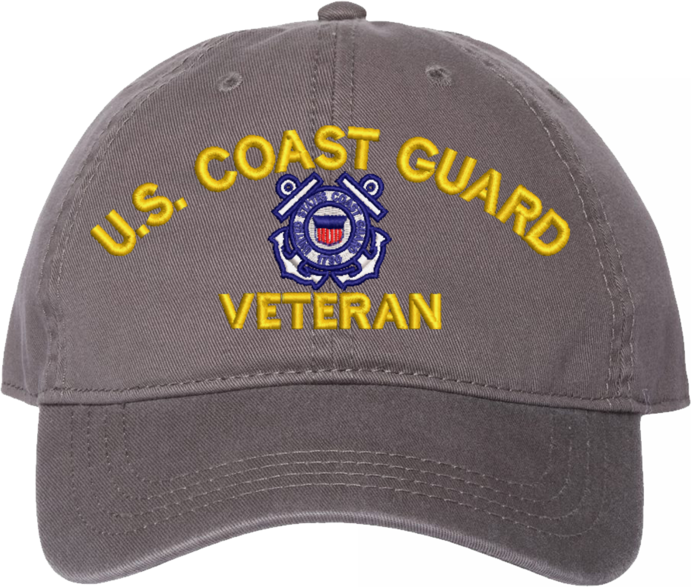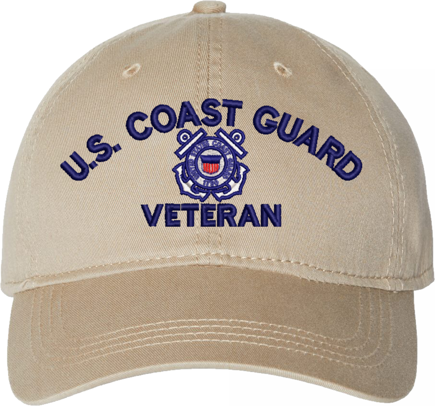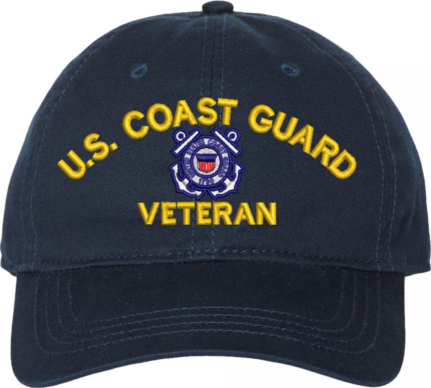 Show your Coast Guard pride with this U.S. Coast Guard Veteran Unstructured Dad Cap from MilitaryBest. Crafted from 100% washed chino twill cotton, this six-panel, low-profile cap offers a relaxed and comfortable fit. Featuring high-quality embroidery done in our Scottsboro, Alabama facility, this cap is designed with a pre-curved visor and an adjustable tri-glide buckle closure for a perfect fit. Whether for everyday wear or as a meaningful gift, this cap is a great way to honor your own or a loved one's service.For caps ordered with custom embroidered personalized text please allow an additional 3 to 5 days production time. All custom back text will be embroidered in ALL CAPITAL LETTERS. Caps with back text or eggs are non-returnable unless there is a material defect in the cap.