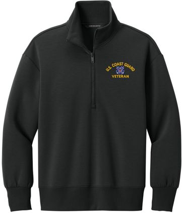 MilitaryBest is proud to offer this U.S. Coast Guard Veteran Women's Soft Spacer Quarter-Zip. This quarter-zip is embroidered by our MilitaryBest team in Northeast Alabama. These quarter-zips are made using spacer yarn to provide light insulation with a soft structure, they also fight odor and provide light UV ray protection.Care Instructions: Turn Garment Inside Out. Machine Wash Cold With Like Colors. Only Non-Chlorine Bleach, When Needed. Tumble Dry Low, Remove Promptly. Cool Iron, If Necessary. Do Not Use Fabric Softeners Or Dryer Sheets.
