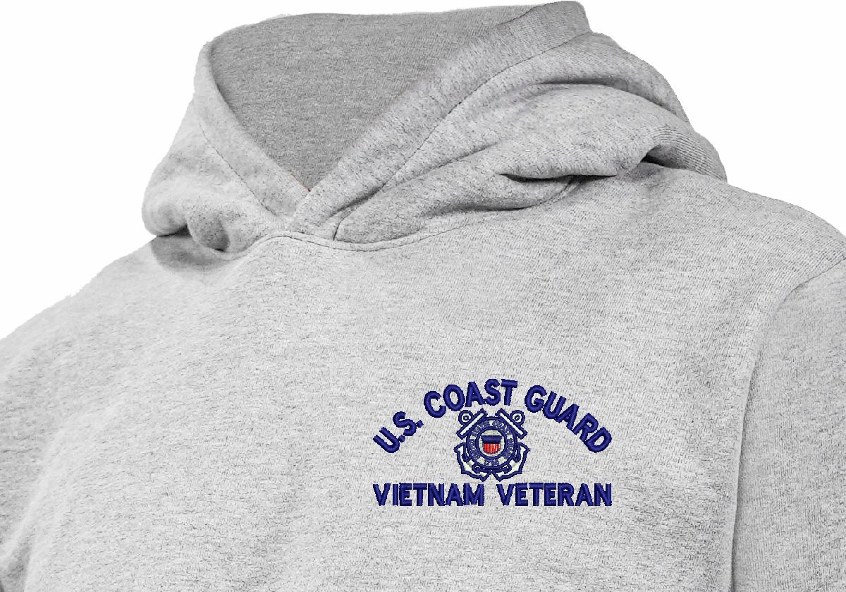 Striving to provide you with the highest quality apparel made in the United States, MilitaryBest is proud to offer this U.S. Coast Guard Vietnam Veteran Heavy Weight Fleece Hoodie. Manufactured by WSI Sportswear in Minnesota and Embroidered by us here at MilitaryBest in Alabama; this fleece hoodie is 100% Made in the USA! We aim to provide you with soft, comfortable, dry-fit, American-made clothing that allows you to be your best.*For washing we recommend machine wash cold with like colors, and line dry.PRODUCT FEATURES