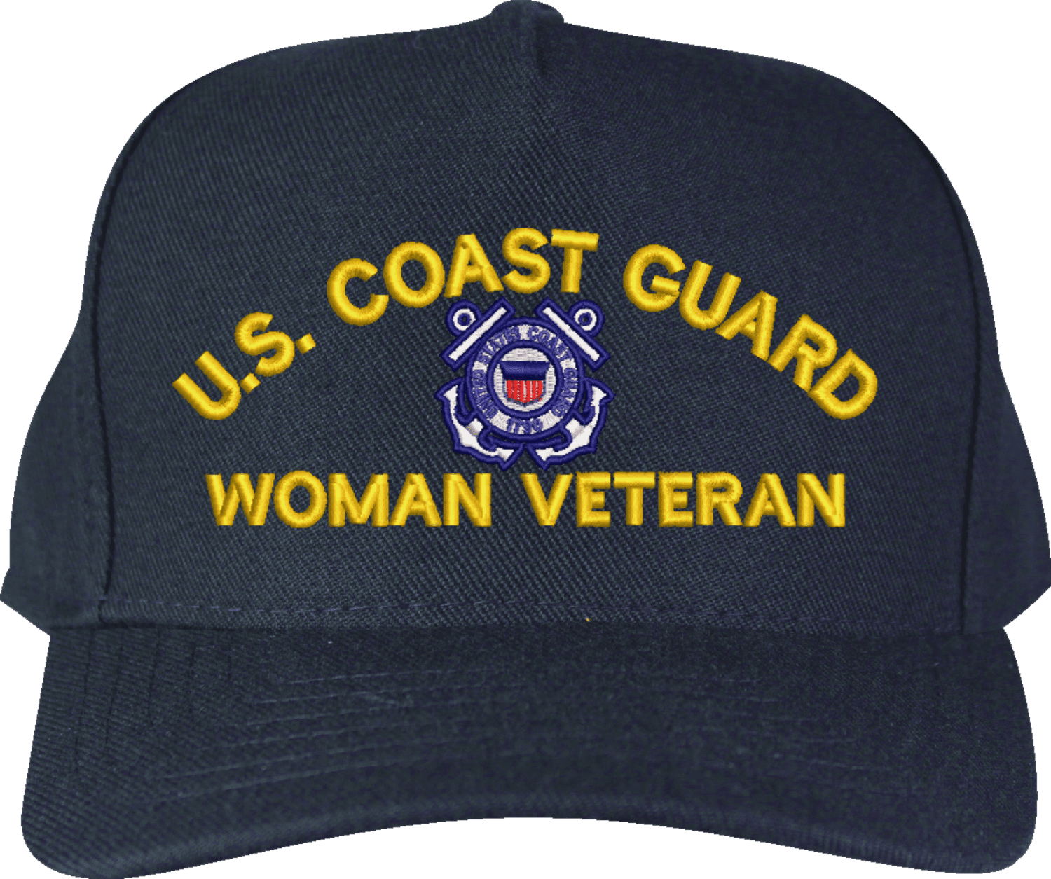 MilitaryBest is proud to offer this quality U.S. Coast Guard Woman Veteran Embroidered Cap. This cap is available in either 5 panel high profile or 6 panel low profile styling. This U.S. Coast Guard Woman Veteran Embroidered Cap will make a great addition to your collection or a great gift. You are sure to be the envy of all your veteran buddies. This U.S. Coast Guard Woman Veteran Embroidered Cap is embroidered at our facilities in Scottsboro, AL by skilled craftsmen with a passion for patriotism. Your satisfaction is guaranteed!We will be glad to include scrambled eggs. For caps ordered with custom embroidered personalized text please allow an additional 3 to 5 days production time. All custom back text will be embroidered in ALL CAPS. Caps with back text or eggs are non-returnable unless there is a material defect in the cap. Unless specified otherwise text will be embroidered with traditional yellow/gold thread.
