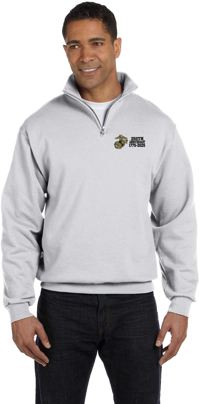 MilitaryBest is proud to offer this U.S. Marine Corps 250th Anniversary Split Design Embroidered Quarter-Zip Pullover. This quality shirt is embroidered by our MilitaryBest team in Northeast Alabama.PRODUCT FEATURES