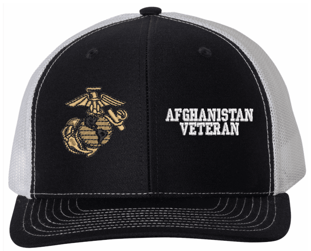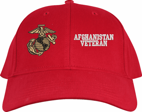 MilitaryBest is proud to offer this U.S. Marine Corps Afghanistan Veteran Made in the USA Cap. The design of this U.S. Marine Corps Cap is crisp, clean, and sure to be loved by people of all ages! Select above from our many cap colors. This U.S. Marine Corps Afghanistan Veteran Made in the USA Cap is crafted by our skilled embroidery technicians at our facilities in Scottsboro, AL. As with all MilitaryBest items, your satisfaction is guaranteed!Caps ordered with custom embroidered personalized back text require an additional 2 to 3 days production time. All custom back text will be embroidered in ALL CAPITAL LETTERS. Caps personalized with back text are non-returnable unless there is a material defect in the cap.