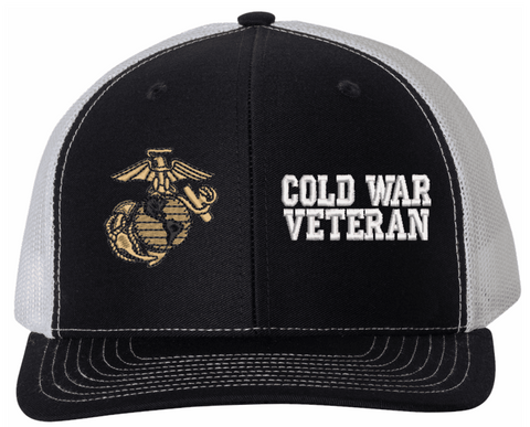 MilitaryBest is proud to offer this U.S. Marine Corps Cold War Veteran Made in the USA Cap. The design of this U.S. Marine Corps Cap is crisp, clean, and sure to be loved by people of all ages! Select above from our many cap colors. This U.S. Marine Corps Cold War Veteran Made in the USA Cap is crafted by our skilled embroidery technicians at our facilities in Scottsboro, AL. As with all MilitaryBest items, your satisfaction is guaranteed!Caps ordered with custom embroidered personalized back text require an additional 2 to 3 days production time. All custom back text will be embroidered in ALL CAPITAL LETTERS. Caps personalized with back text are non-returnable unless there is a material defect in the cap.