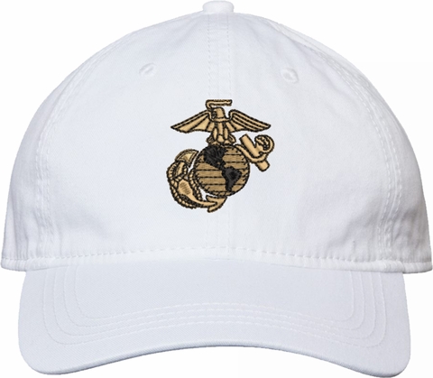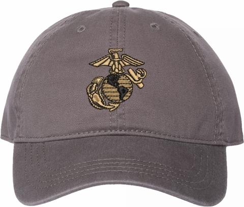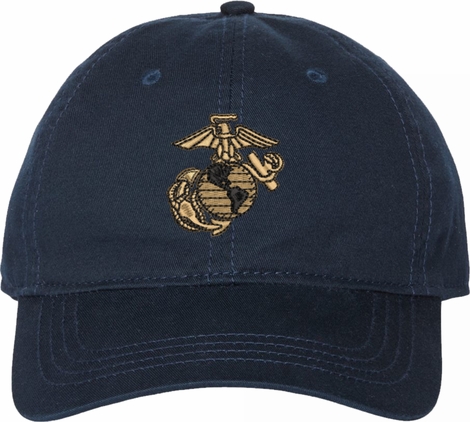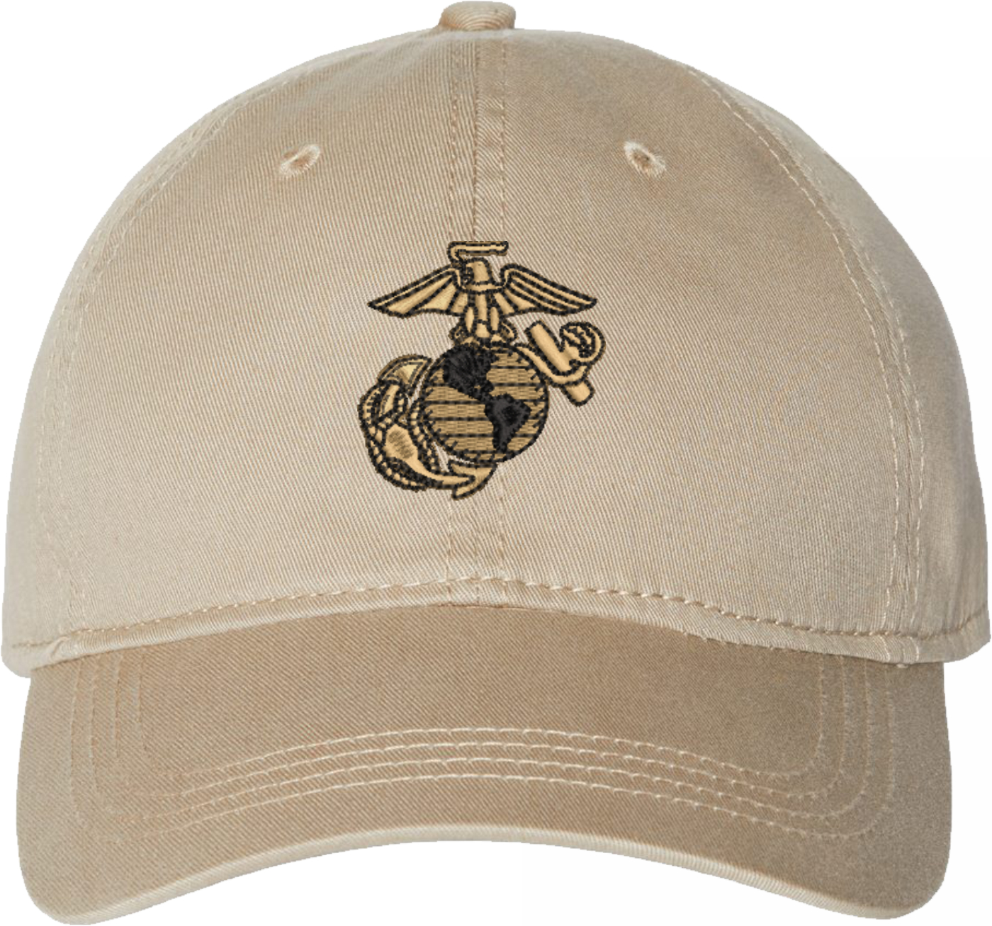 Show your Marine Corps pride with this U.S. Marine Corps Eagle, Globe, and Anchor (EGA) Unstructured Dad Cap from MilitaryBest. Crafted from 100% washed chino twill cotton, this six-panel, low-profile cap offers a relaxed and comfortable fit. Featuring high-quality embroidery done in our Scottsboro, Alabama facility, this cap is designed with a pre-curved visor and an adjustable tri-glide buckle closure for a perfect fit. Whether for everyday wear or as a meaningful gift, this cap is a great way to honor your own or a loved one's service.For caps ordered with custom embroidered personalized text please allow an additional 3 to 5 days production time. All custom back text will be embroidered in ALL CAPITAL LETTERS. Caps with back text or eggs are non-returnable unless there is a material defect in the cap.