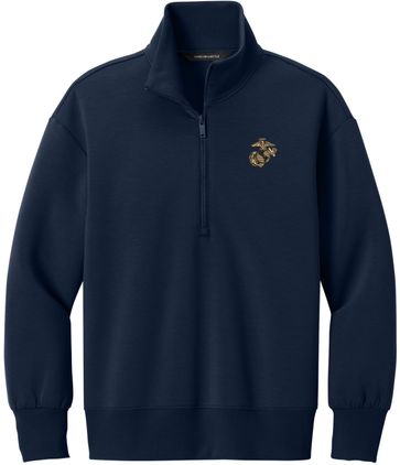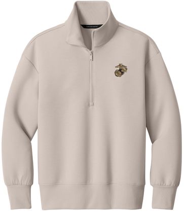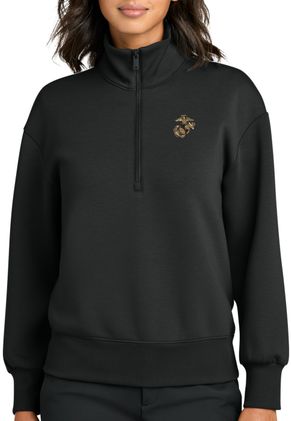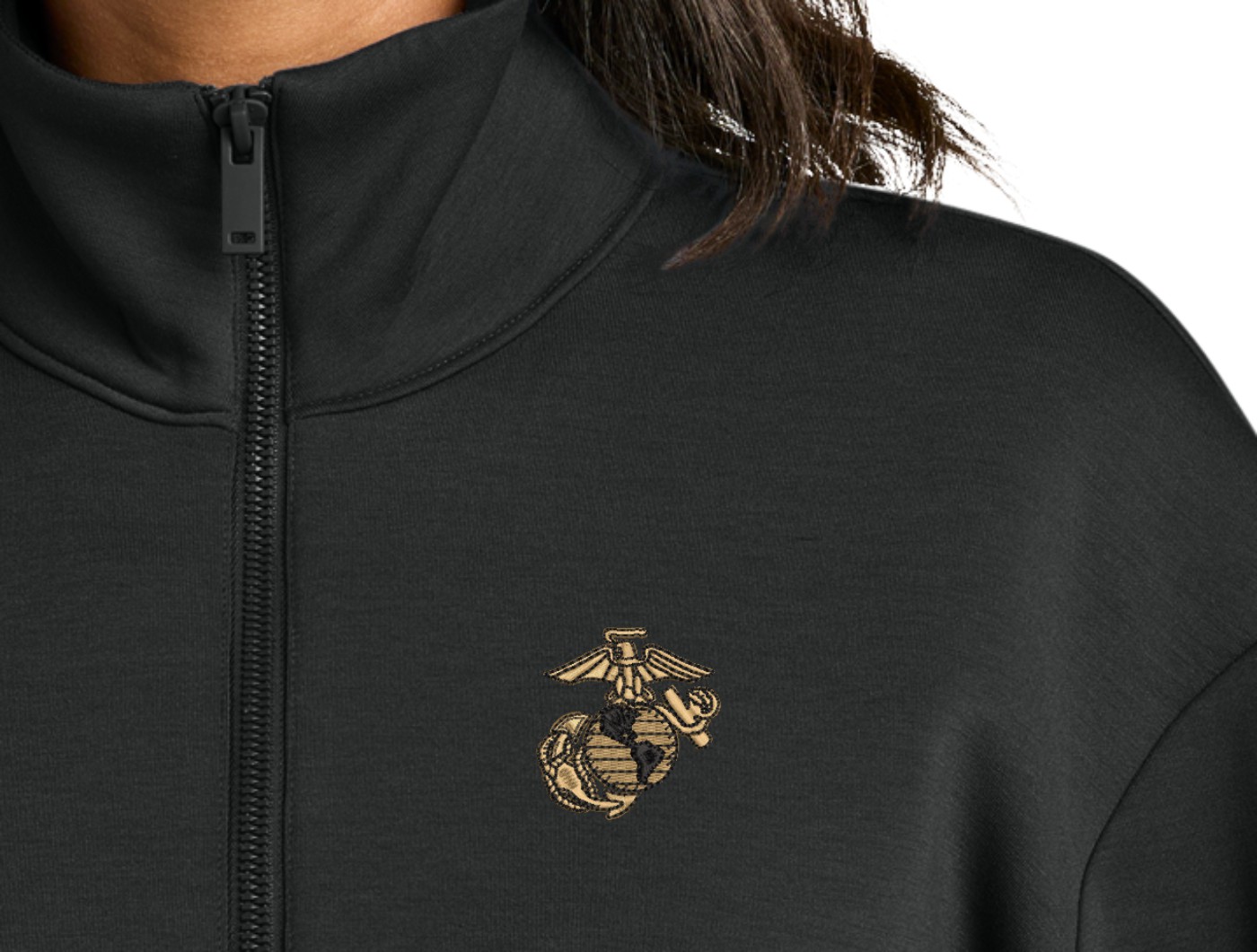 MilitaryBest is proud to offer this U.S. Marine Corps Eagle, Globe, and Anchor (EGA) Women's Soft Spacer Quarter-Zip. This quarter-zip is embroidered by our MilitaryBest team in Northeast Alabama. These quarter-zips are made using spacer yarn to provide light insulation with a soft structure, they also fight odor and provide light UV ray protection.Care Instructions: Turn Garment Inside Out. Machine Wash Cold With Like Colors. Only Non-Chlorine Bleach, When Needed. Tumble Dry Low, Remove Promptly. Cool Iron, If Necessary. Do Not Use Fabric Softeners Or Dryer Sheets.