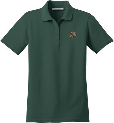 MilitaryBest is proud to offer this U.S. Marine Corps Eagle, Globe, and Anchor (EGA) Women's Stain-Release Polo. This polo is embroidered by our MilitaryBest team in Northeast Alabama. These polos are made with a stain-release finish for long-lasting wear, odor-fighting properties, and superior wrinkle and shrink resistance.Care Instructions: Machine Wash Cold With Like Colors. Do Not Use Fabric Softener. Do Not Bleach. Tumble Dry Low. Warm Iron If Necessary.
