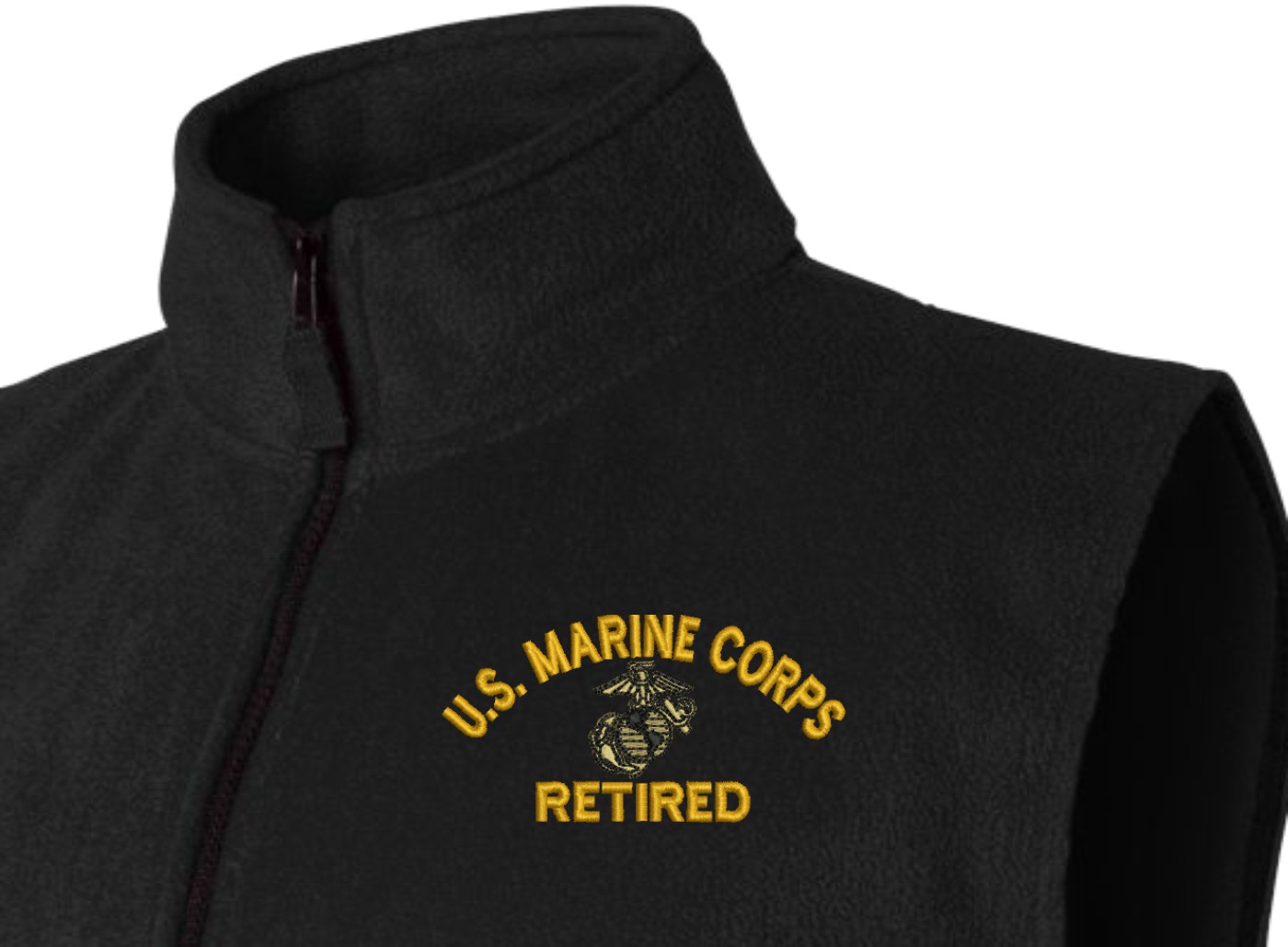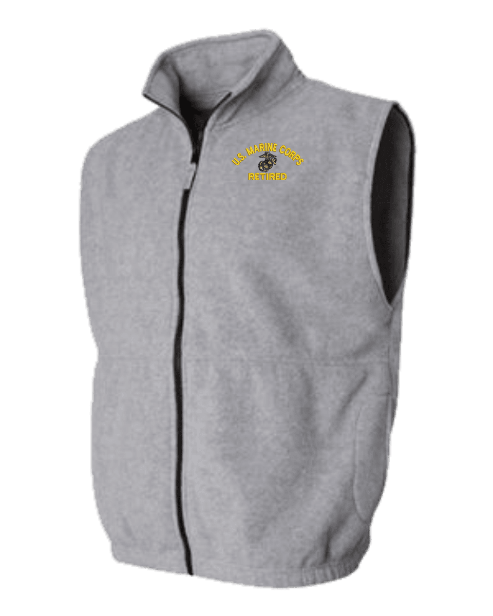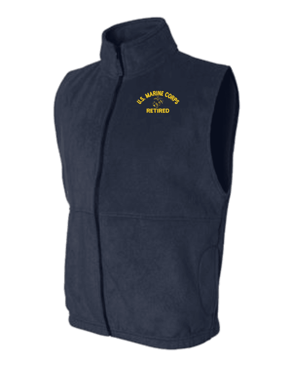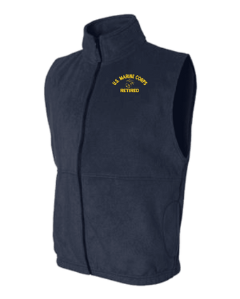 Due to supply chain disruptions, some colors and sizes may not be available in the same Brand, in these cases a brand of comparable quality will be used. Feel free to call in advance of your order, with questions you may have.MilitaryBest is expanding its line of Men's apparel with this quality U.S. Marine Corps Eagle Globe and Anchor (EGA) Retired Full-Zip Fleece Vest. This U.S. Marine Corps Eagle Globe and Anchor (EGA) Retired Full-Zip Fleece Vest features a convertible collar with dyed-to-match zipper pull, oversized nylon reinforced slash pockets, and an elastic hem. It is made using a 100% anti-pill polyester Fleece Vest. This U.S. Marine Corps Eagle Globe and Anchor (EGA) Retired Full-Zip Fleece Vest will make an excellent addition to your wardrobe, or a quality gift. Your satisfaction is guaranteed! These Vests are custom embroidered at our facilities in Scottsboro, AL.