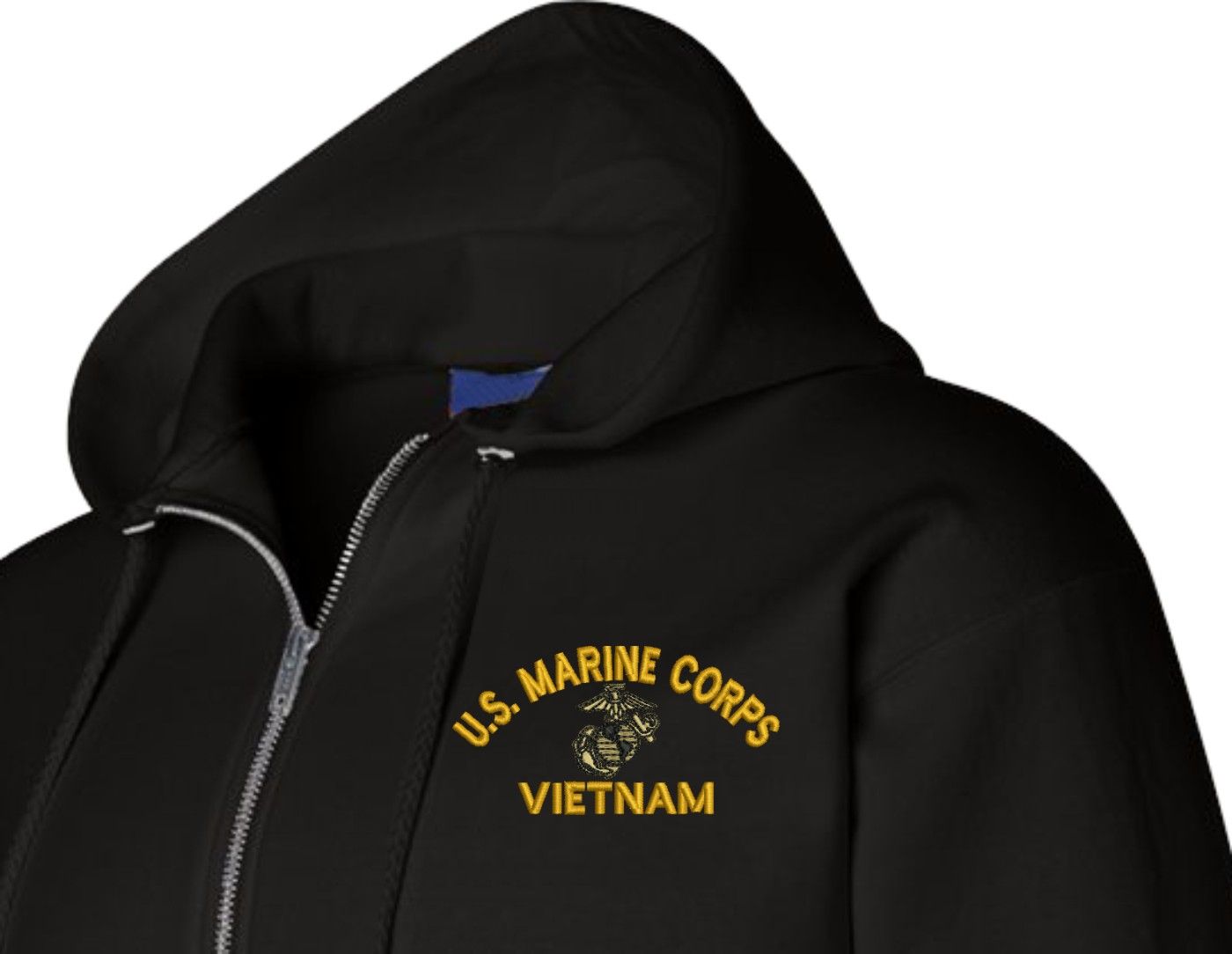 MilitaryBest has expanded its line of apparel with this custom embroidered U.S. Marine Corps Eagle Globe and Anchor (EGA) Veteran Zippered Hoodie. Each Hoodie is direct embroidered onto a Champion brand 9.5 oz 50/50 Cotton Poly blend. This U.S. Marine Corps Eagle Globe and Anchor (EGA) Veteran Zippered Hoodie will make an excellent addition to your wardrobe, or a great gift. Your satisfaction is Guaranteed! This U.S. Marine Corps Eagle Globe and Anchor (EGA) Veteran Zippered Hoodie is custom embroidered at our facilities in Scottsboro, AL.