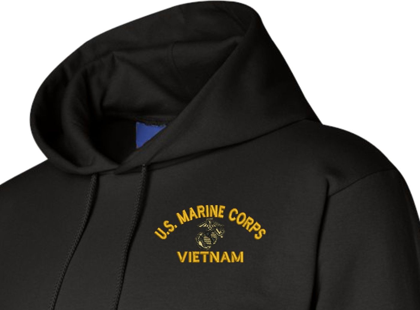 MilitaryBest has expanded its line of apparel with this custom embroidered U.S. Marine Corps Eagle Globe and Anchor (EGA) Vietnam Hoodie. Each Hoodie is direct embroidered onto a Champion brand 9.5 oz 50/50 Cotton Poly blend. This U.S. Marine Corps Eagle Globe and Anchor (EGA) Vietnam Hoodie will make an excellent addition to your wardrobe, or a great gift. Your satisfaction is Guaranteed! This U.S. Marine Corps Eagle Globe and Anchor (EGA) Vietnam Hoodie is custom embroidered at our facilities in Scottsboro, AL.