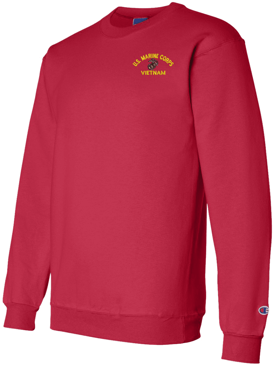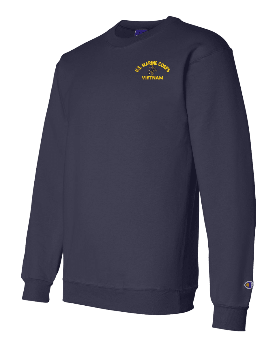 MilitaryBest has expanded its line of apparel with this custom embroidered U.S. Marine Corps Eagle Globe and Anchor (EGA) Vietnam Sweatshirt. Each sweatshirt is direct embroidered onto a Champion brand 9.5 oz 50/50 Cotton Poly blend. This U.S. Marine Corps Eagle Globe and Anchor (EGA) Vietnam Sweatshirt will make an excellent addition to your wardrobe, or a great gift. Your satisfaction is Guaranteed! This U.S. Marine Corps Eagle Globe and Anchor (EGA) Vietnam Sweatshirt is custom embroidered at our facilities in Scottsboro, AL.