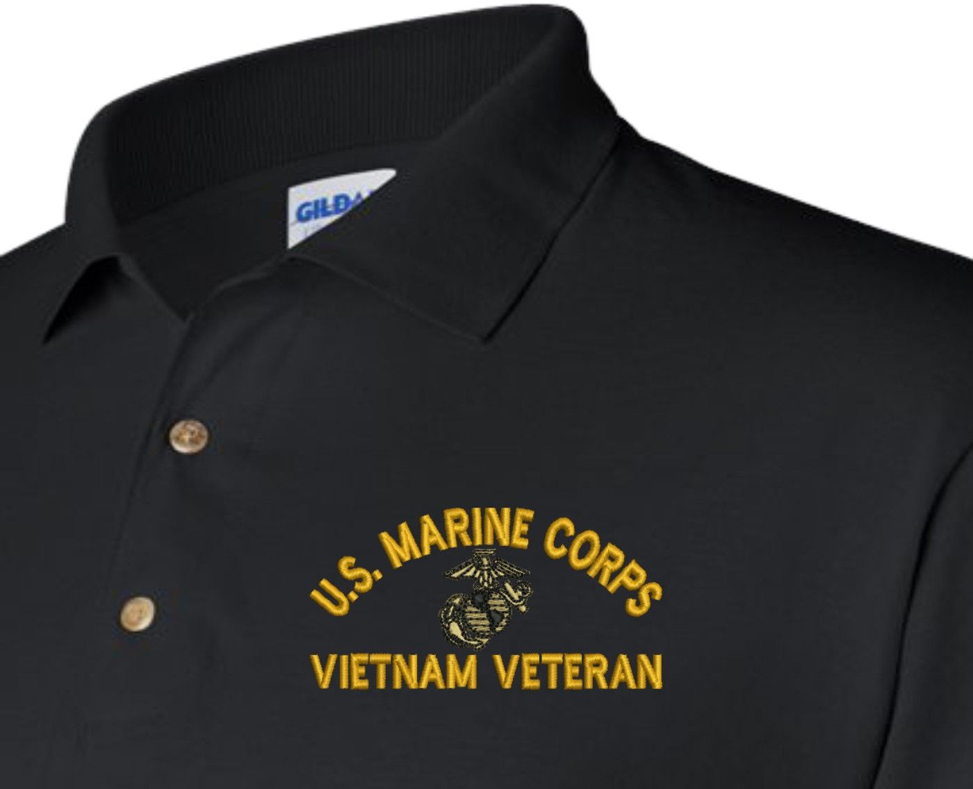 MilitaryBest has expanded its line of apparel with this custom embroidered U.S. Marine Corps Eagle Globe and Anchor (EGA) Vietnam Veteran Moisture Wicking Polo. This Polo is made using 50/50 cotton/polyester moisture wicking material. This U.S. Marine Corps Eagle Globe and Anchor (EGA) Vietnam Veteran Moisture Wicking Polo will make an excellent addition to your wardrobe, or a great gift. Your satisfaction is guaranteed! Each U.S. Marine Corps Eagle Globe and Anchor (EGA) Vietnam Veteran Moisture Wicking Polo is directly embroidered at our facilities in Scottsboro, AL.