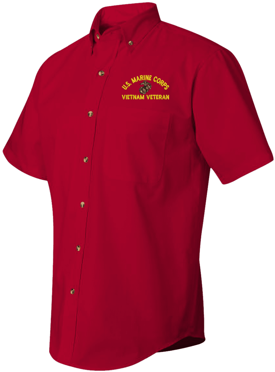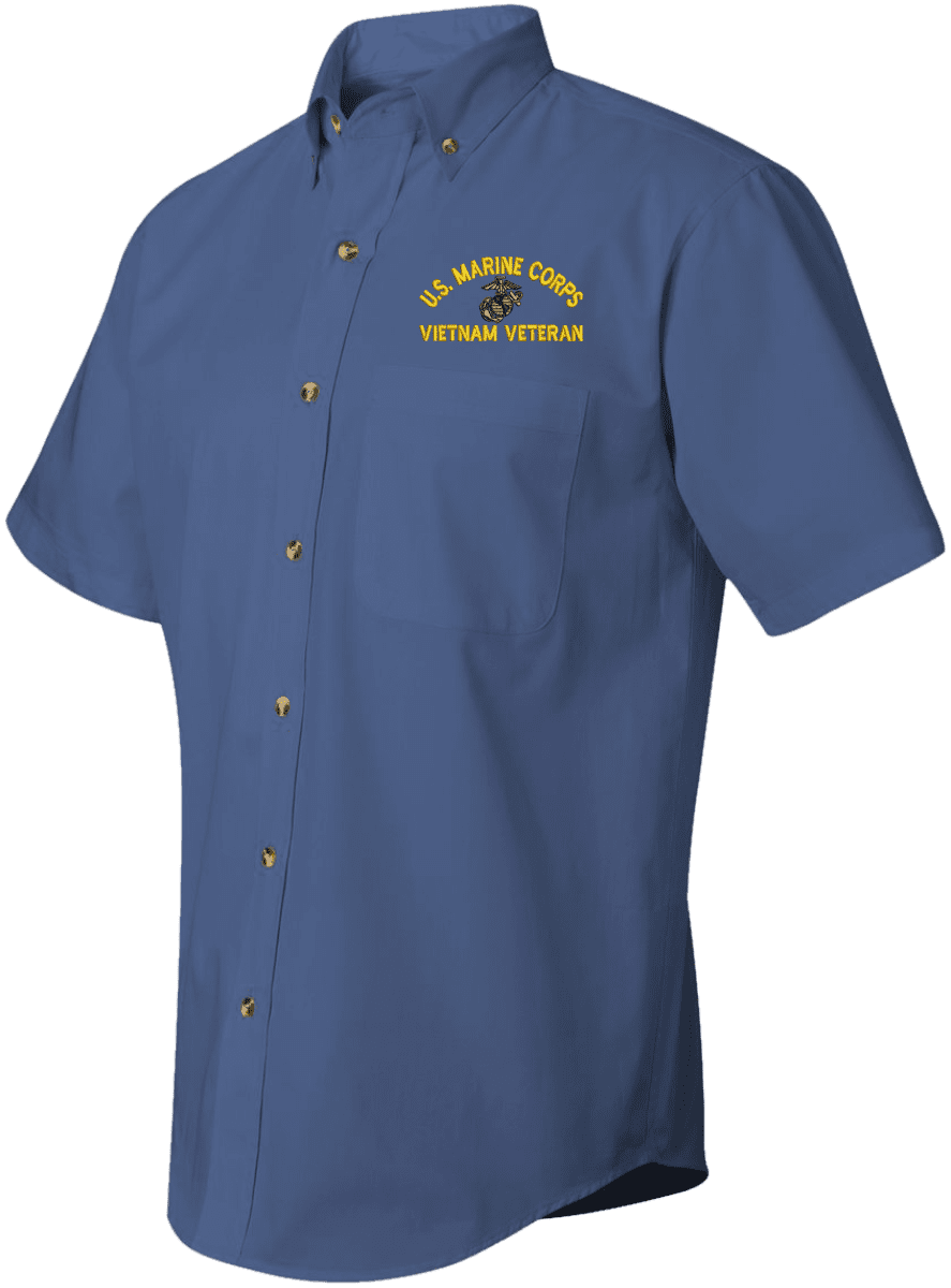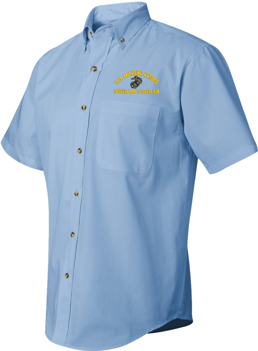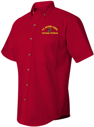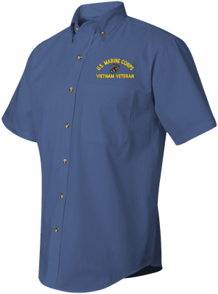 We are selling out of our remaining inventory of this discontinued item at a limited supply.MilitaryBest has expanded its line of apparel with this custom embroidered U.S. Marine Corps Eagle Globe and Anchor Vietnam Veteran Short Sleeve Dress Shirt. This Featherlite brand short sleeve button down dress shirt is made using a stain-resistant 60/40 cotton/polyester twill material. This U.S. Marine Corps Eagle Globe and Anchor Vietnam Veteran Short Sleeve Dress Shirt will make an excellent addition to your wardrobe or a quality gift. This U.S. Marine Corps Eagle Globe and Anchor Vietnam Veteran Short Sleeve Dress Shirt is custom embroidered at our facilities in Scottsboro, Alabama.